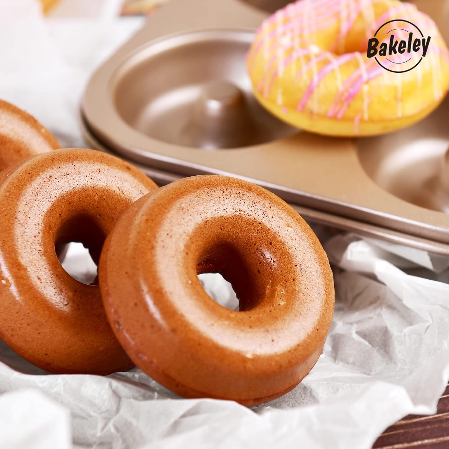 Donut Pan Cake Mold, 6-Cavity Non-Stick Ring Doughnut Bakeware for Oven Baking (Champagne Gold)