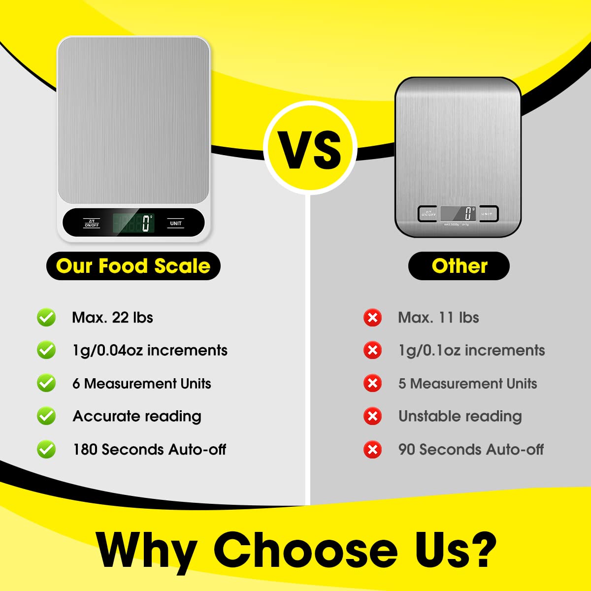 - 【Precise Weight】22lb capacity, 1g/0.04oz resolution, made with 4 Japanese-precision sensors, this digital kitchen scale will give you accurate weight every single time, measuring range: 0.07oz to 22lbs (2g to 10kg).
