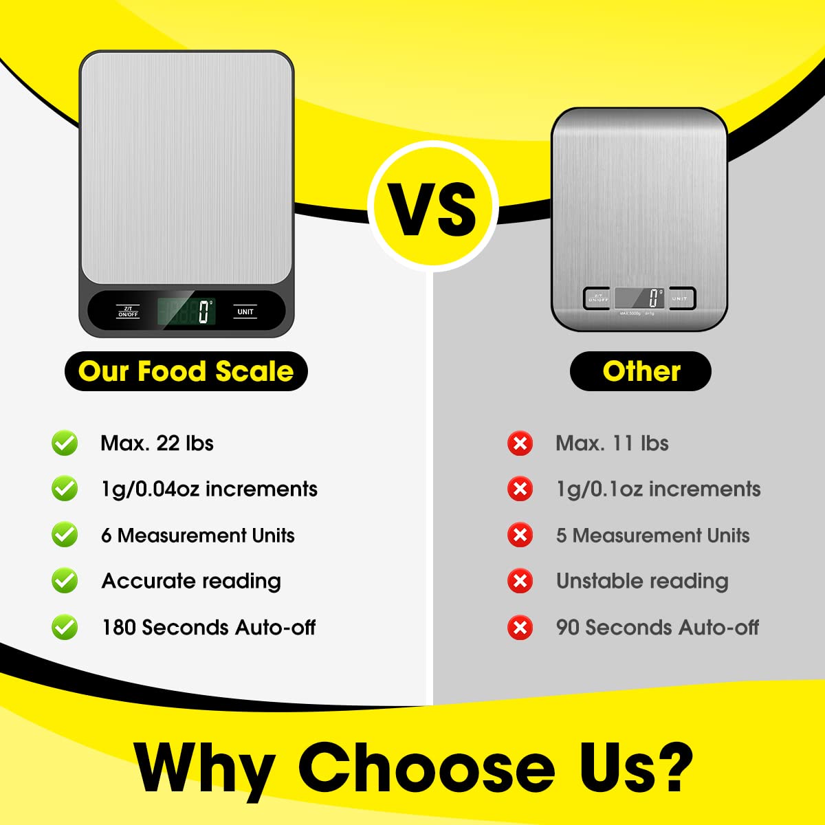 - 【Multifunction Scale】This digital kitchen scale has 6 measurement unit: g, kg, lb, oz, ml, milk ml.