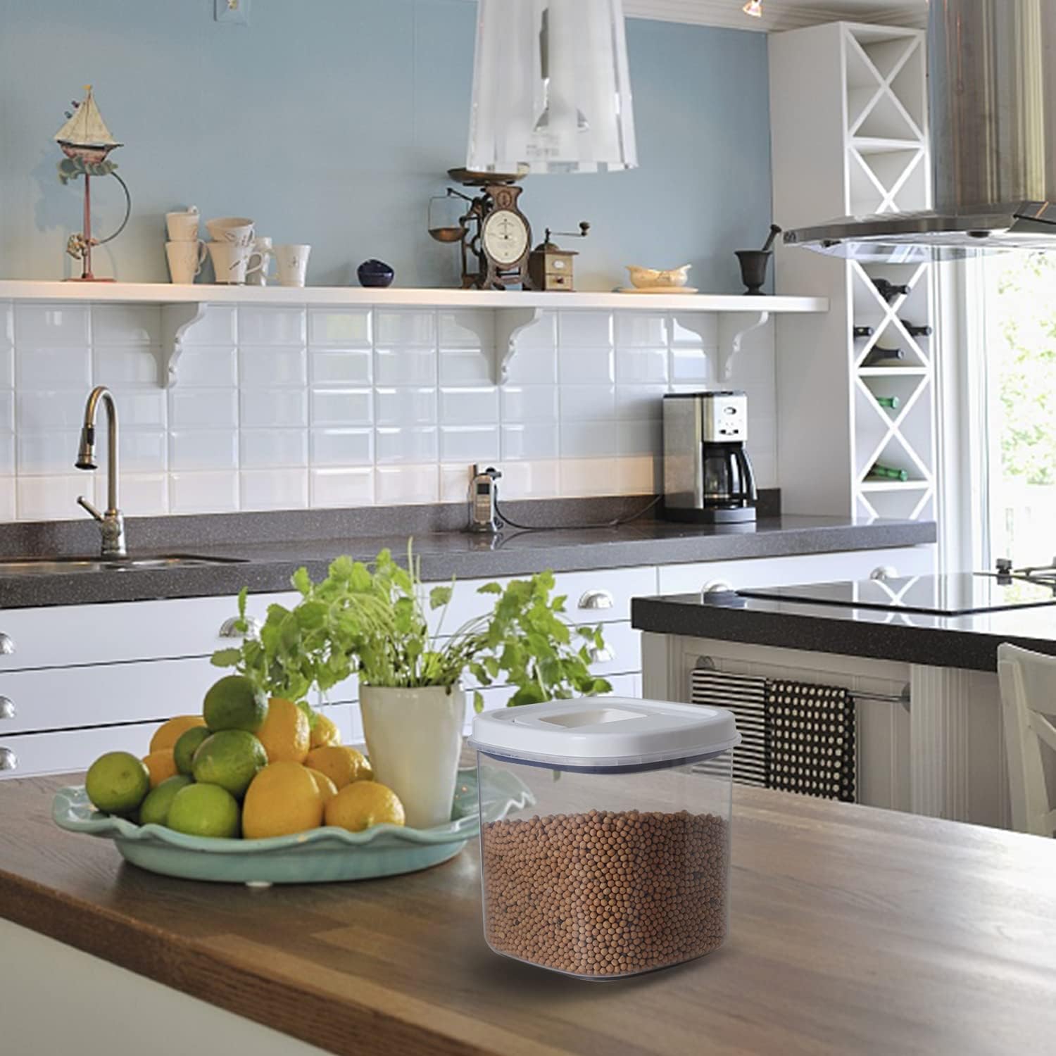 - 【Product Design and Storage】- Press the button to engage the airtiaht seal. Clear and gloss finish makes it easy to see the stored items and stocks.