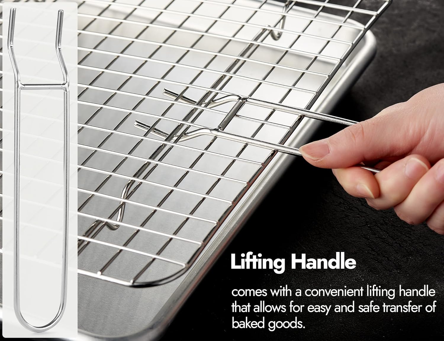 CURTA 2 Pack Chef Cooling Rack, NSF Listed 18/8 Stainless Steel Oven Safe Grid Wire Cookie Cooling Racks for Baking & Cooking - 12" X 8.7" Commercial Grade comes with Lifting Handle …