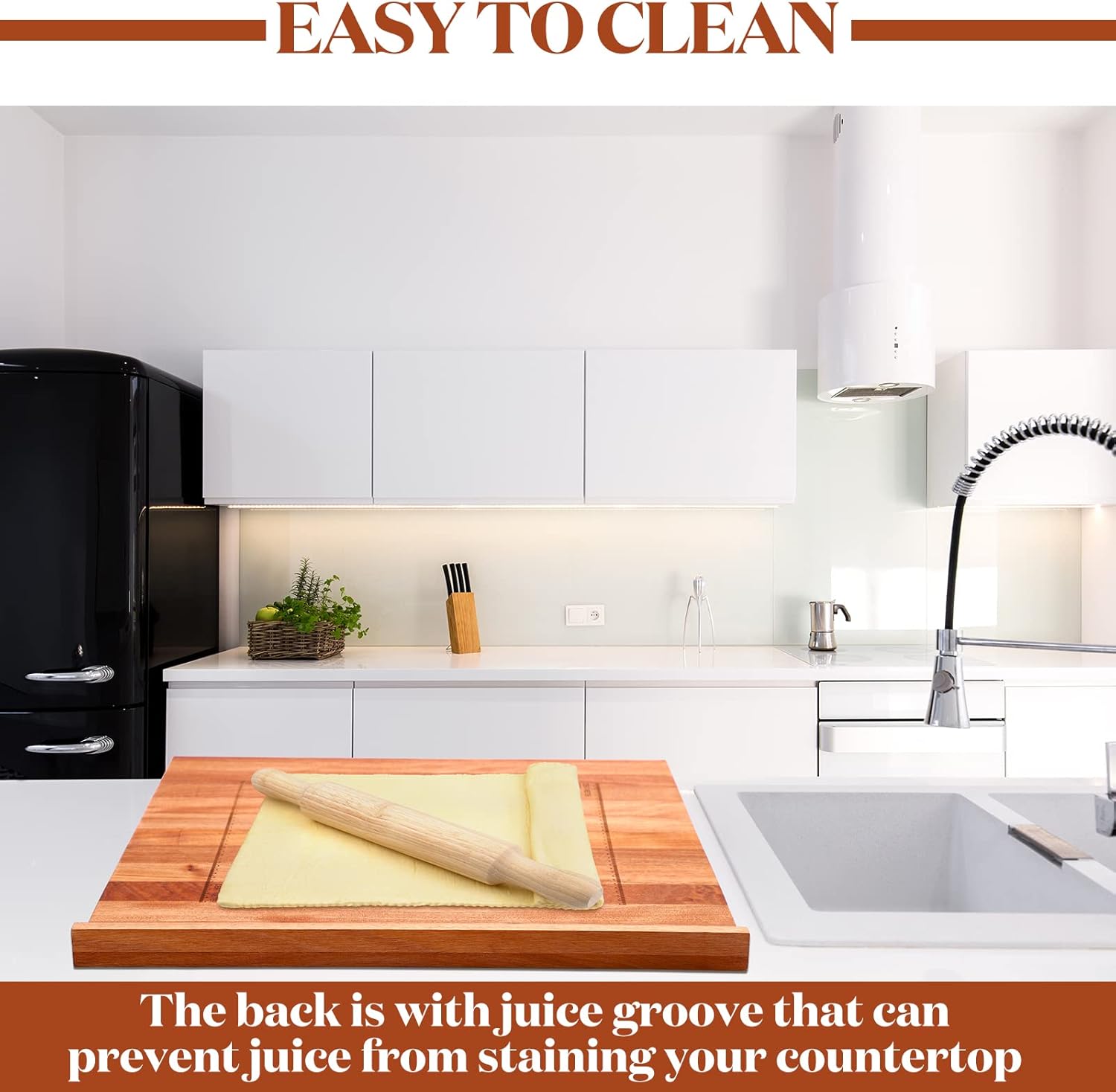 - Extra Large Size: the wooden pastry board for rolling dough measures approx. 24 x 22.8 x 1.5 inch, and it feathers with 2 in 1 design, one side is smooth for kneading or rolling dough, the other side can act as cutting board, maximize utilization to save your kitchen space, and make your kitchen more tidy and orderly
