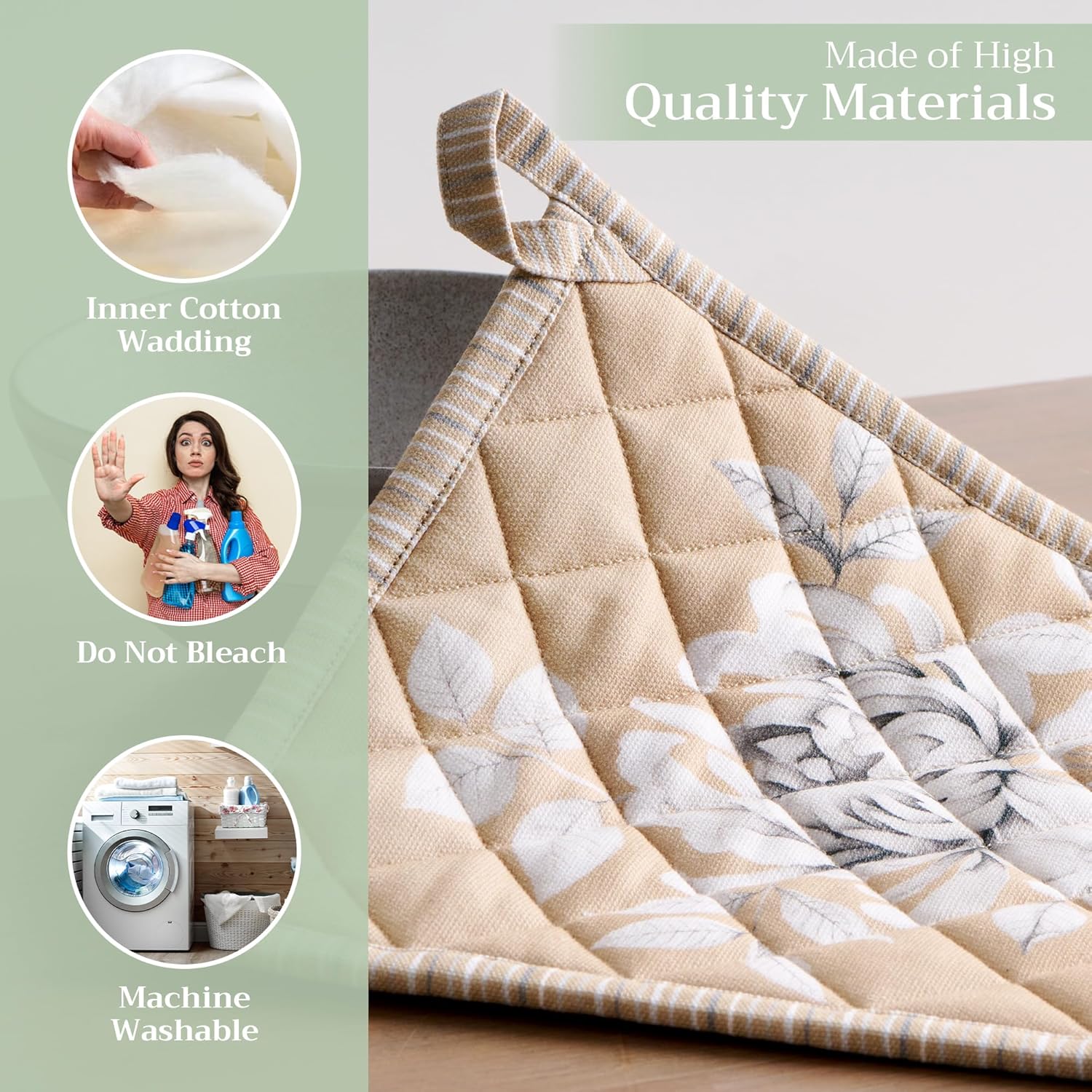 - 100% Quilted cotton: Made from premium quilted cotton, our pot holder ensures safe handling of hot pans or dishes. The soft, durable build provides excellent heat resistance and grip—perfect for everyday cooking and baking needs