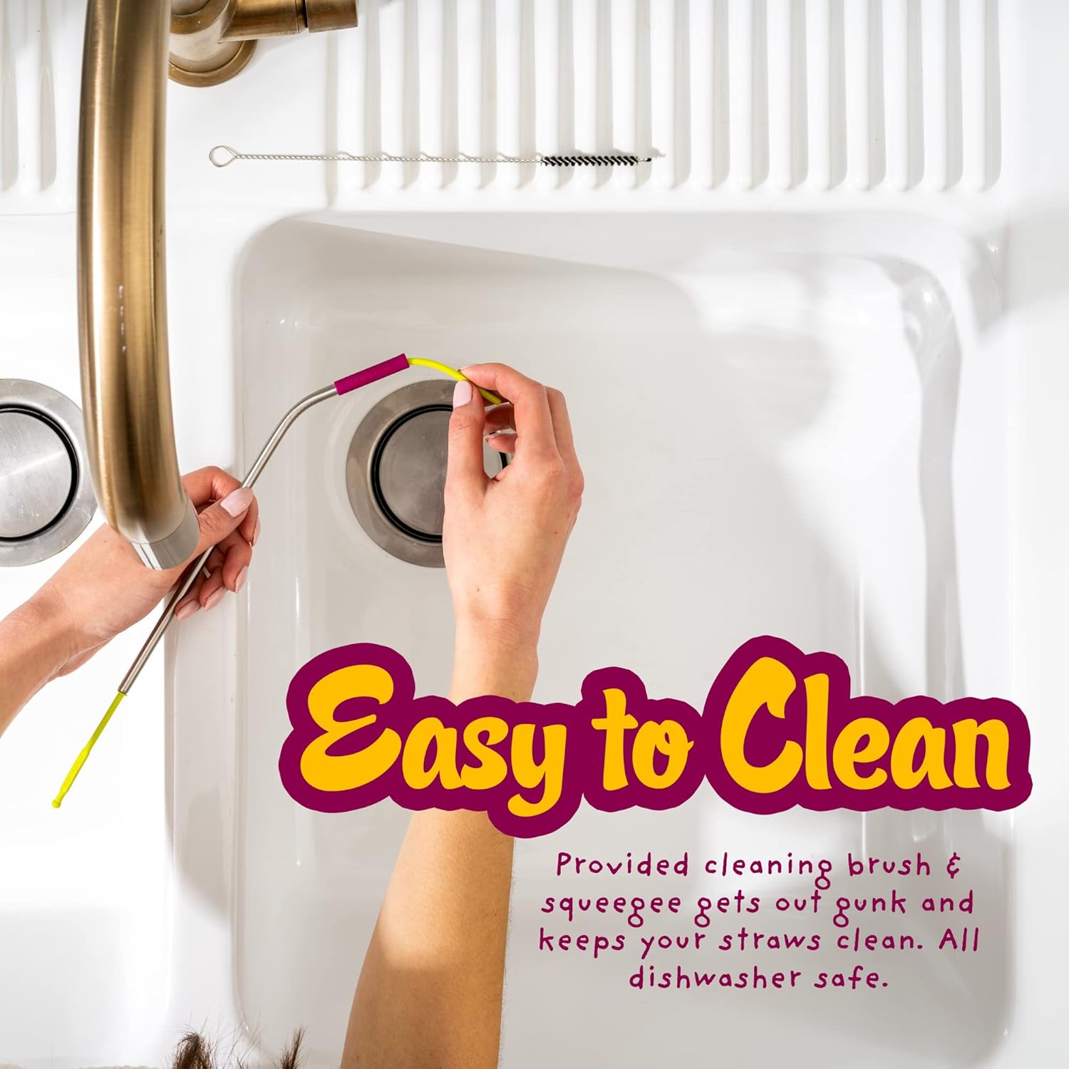 - Easy Clean + Dishwasher Safe: Patented Squeegee and Cleaning Brush Included. Completely Remove all the Gunk with our Patented Straw Squeegee + Use the Brush to Clean Around the Edges