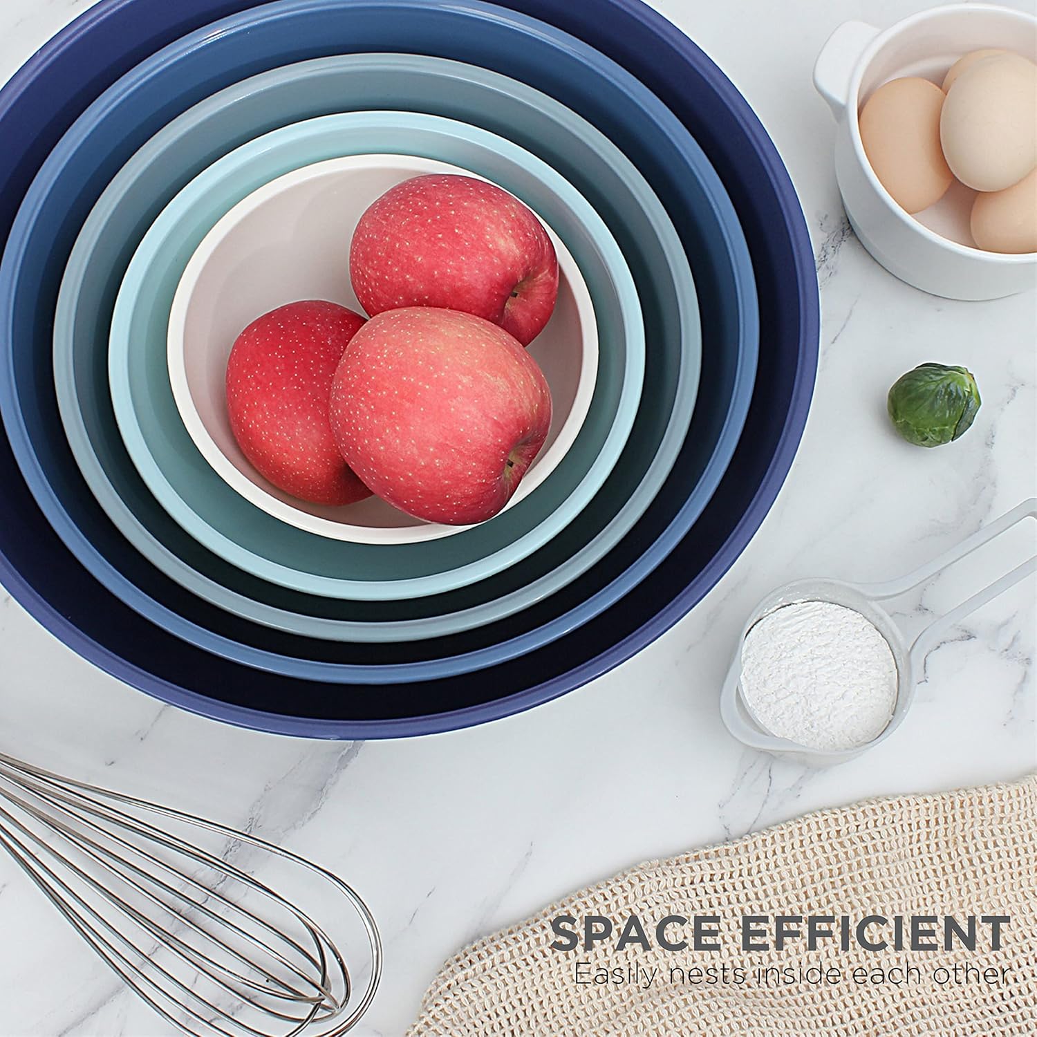 - 12 Piece nesting bowl set - a practical set of easy to clean kitchen bowls that can be used for food prep, serving and storing.