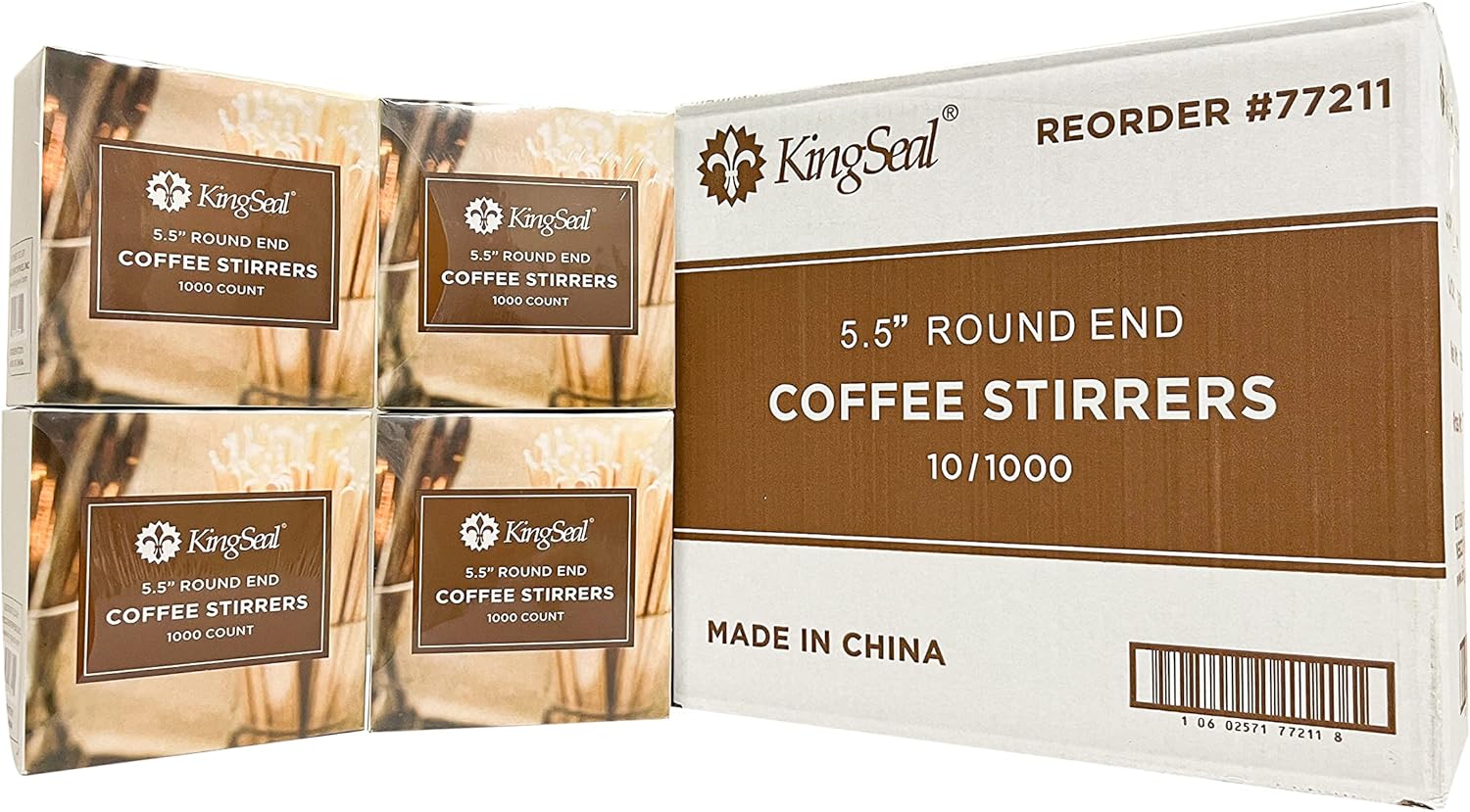 4,000 Count | KingSeal Natural Birch Wood Coffee Beverage Stirrers, Stir Sticks, Waxing Sticks, 5.5 Inches, Round End - 4 Packs x 1000 Stirrers