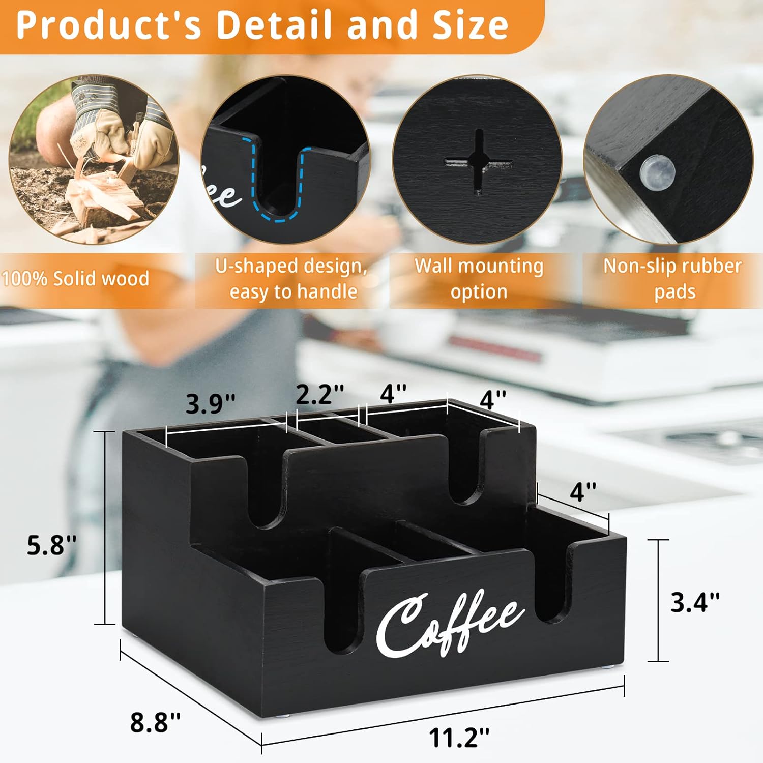 - 【Durable Coffee Bar Accessories and Organizer】: The Coffee Station Organizer Countertop is made of durable premium solid wood and can be used for a long time. The coffee cups, lids and straw storage box occupies the smallest space on the countertop and coffee table. The multifunctional coffee bar accessories is very easy to clean and take care of. Just wipe with a damp cloth to clean up the residue or liquid on the wooden coffee bar storage. For best results,please keep dry thoroughly.