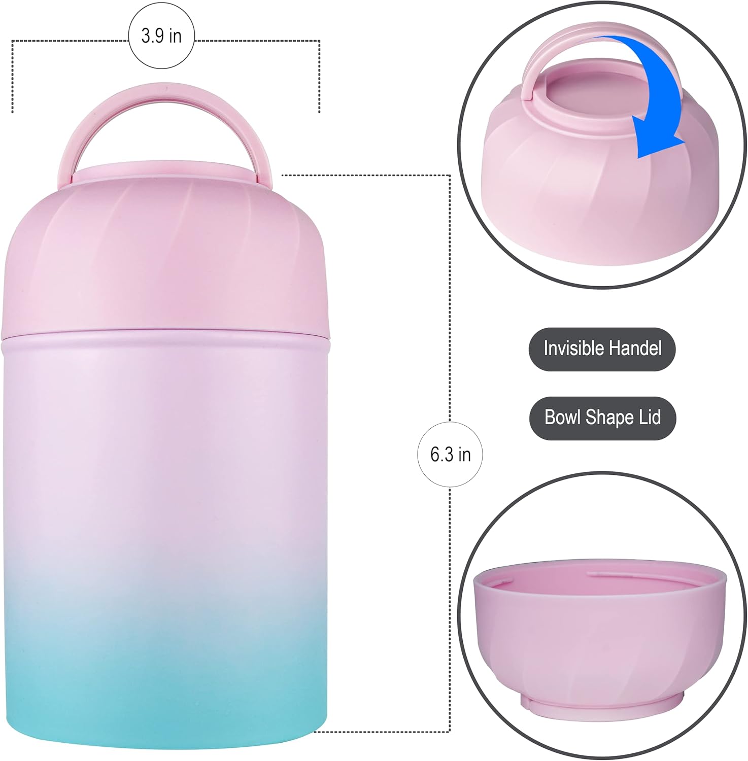Soup Thermo for Hot Food & Drinks, Thermo Lunch Box for Kids, 17oz Vacuum Insulated Food Container with Spoon&&Drawstring Bag, Soup Therm for Adults, Pink&Green
