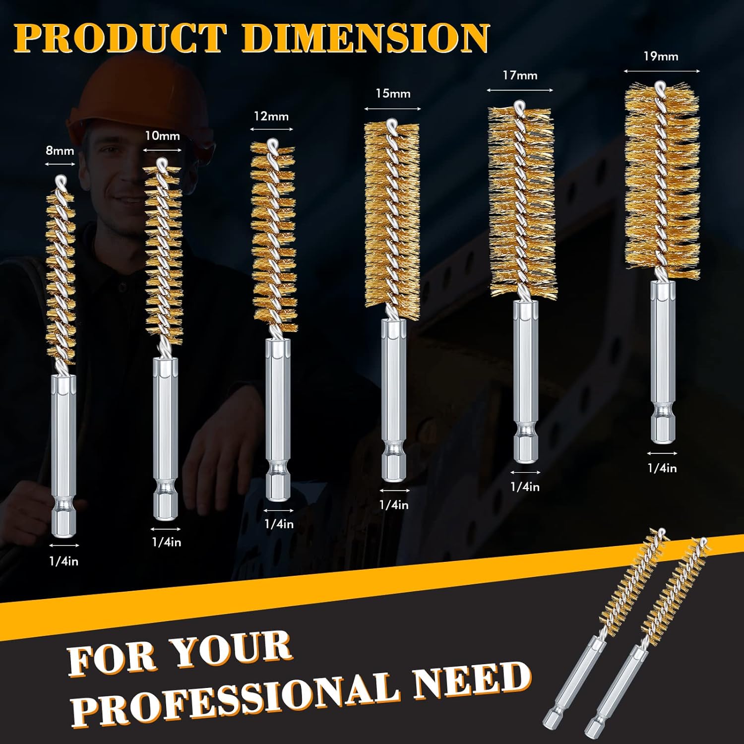 - What will receive: there are stainless steel cleaning brushes and brass cleaning brushes with different sizes, all of them have 1/4 inch hex shank, enough for your need in common wire brush applications