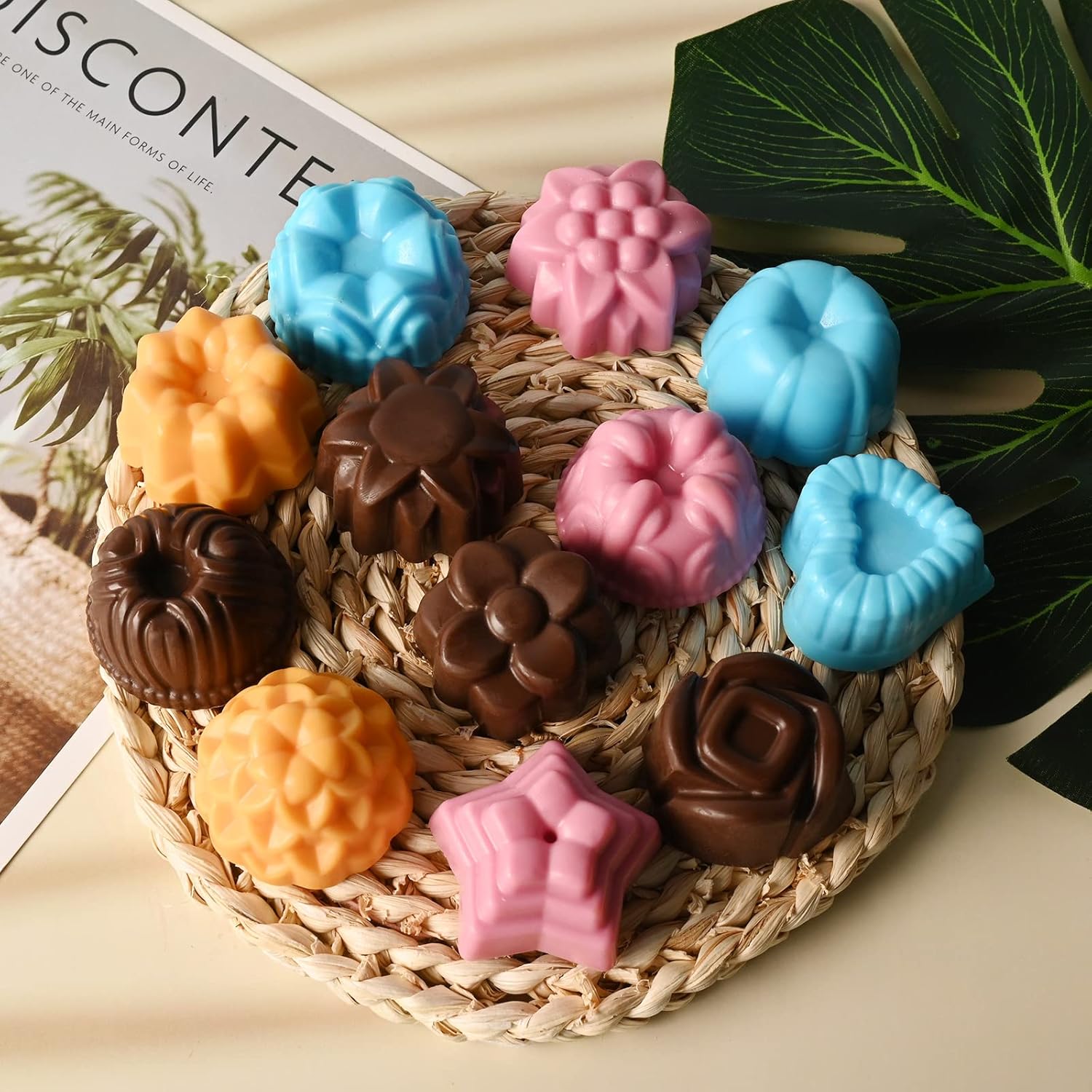 Sakolla 3 Pack Flower Molds Silicone, 12 Cavities Different Shapes Silicone Molds for Chocolate, Cupcake, Candy, Jelly, Ice Cube, Muffin (Pink, Purple, Blue)