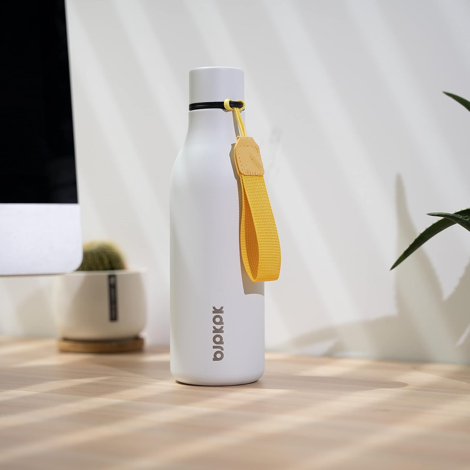BJPKPK Insulated Water Bottles, 18 oz Stainless Steel Metal Water Bottle with Strap, BPA Free Leak Proof Thermos, Mugs, Flasks, Reusable Water Bottle for Sports & Travel, White
