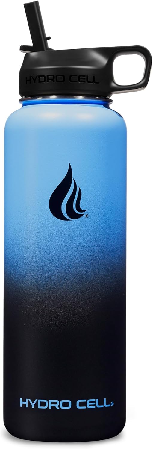 HYDRO CELL Stainless Steel Insulated Water Bottle with Straw - For Cold & Hot Drinks - Metal Vacuum Flask with Screw Cap and Modern Leakproof Sport Thermos for Adults (Blue/Black 40oz)