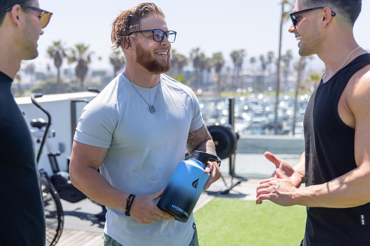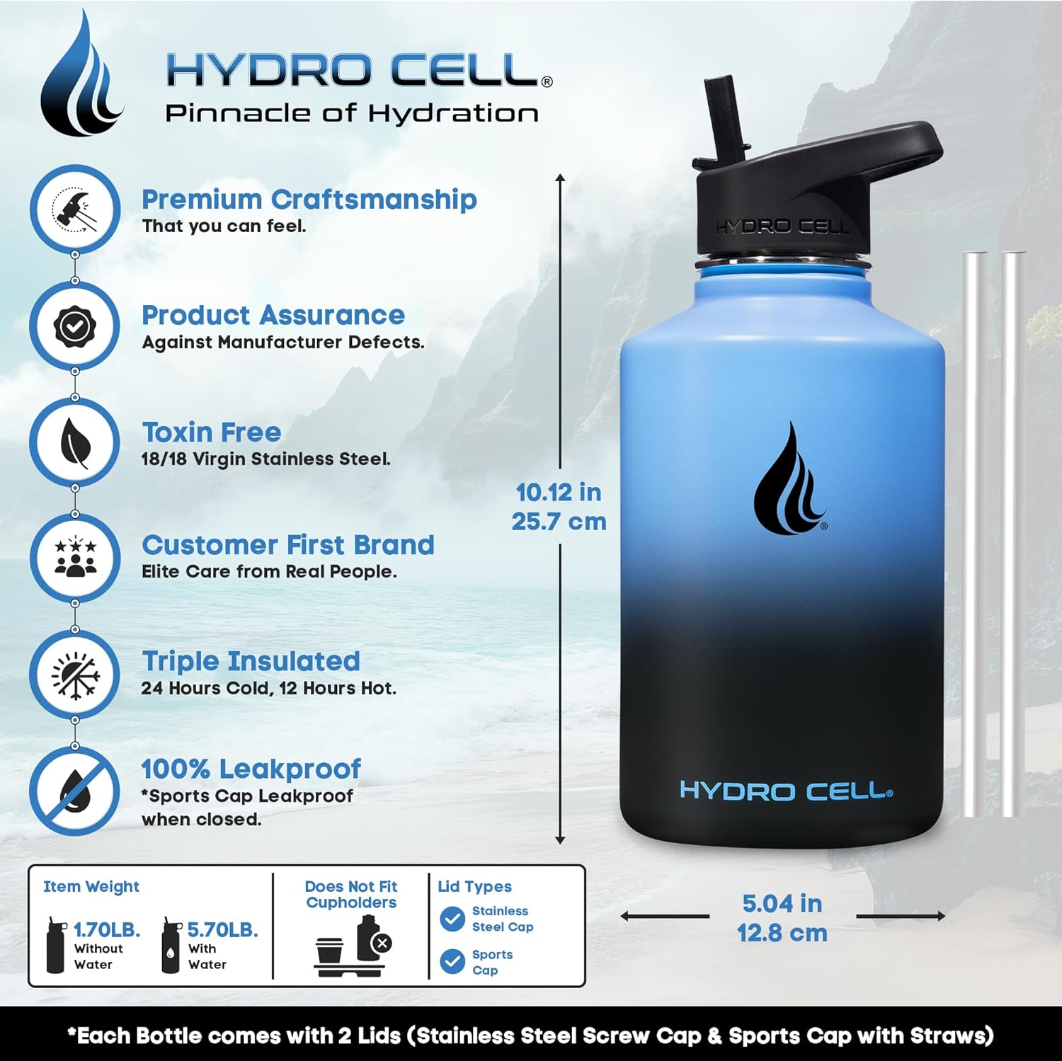 HYDRO CELL Stainless Steel Insulated Water Bottle with Straw - For Cold & Hot Drinks - Metal Vacuum Flask with Screw Cap and Modern Leakproof Sport Thermos for Adults (Blue/Black 64oz)