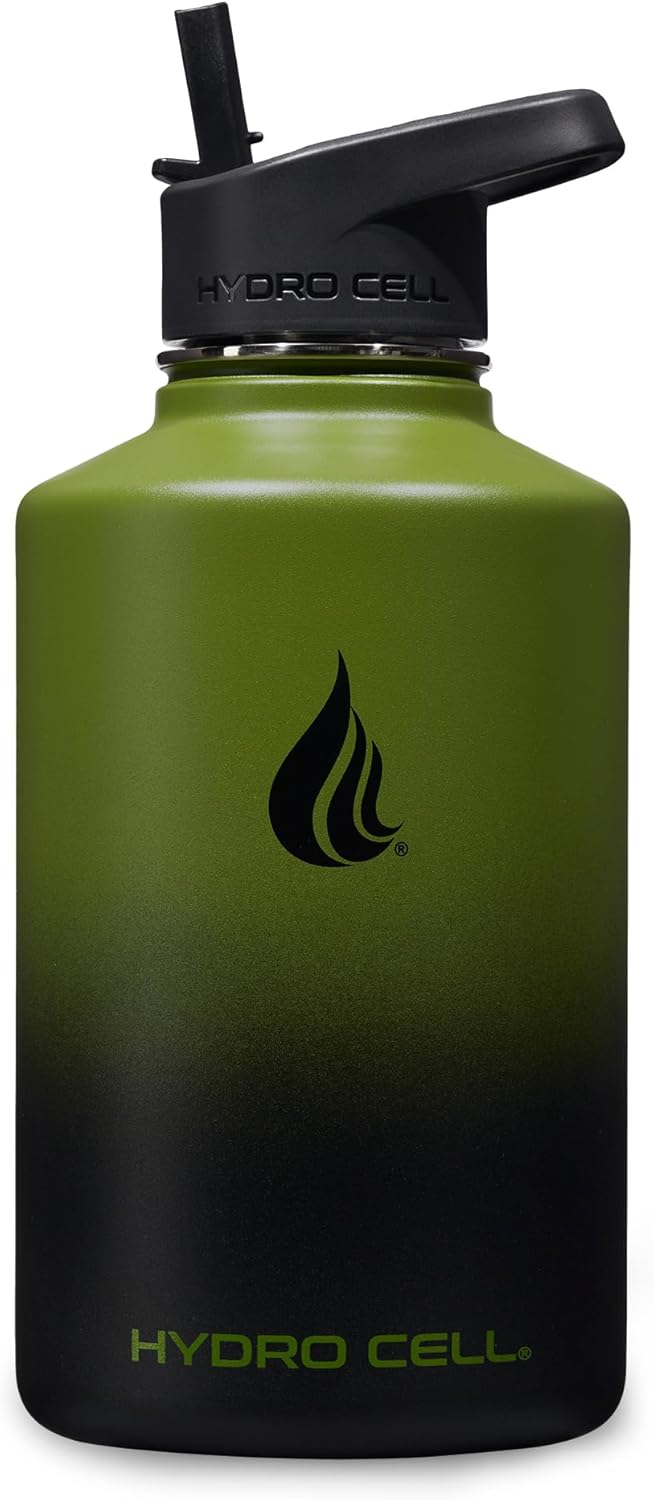 HYDRO CELL Stainless Steel Insulated Water Bottle with Straw - For Cold & Hot Drinks - Metal Vacuum Flask with Screw Cap and Modern Leakproof Sport Thermos for Adults (Army/Black 64oz)