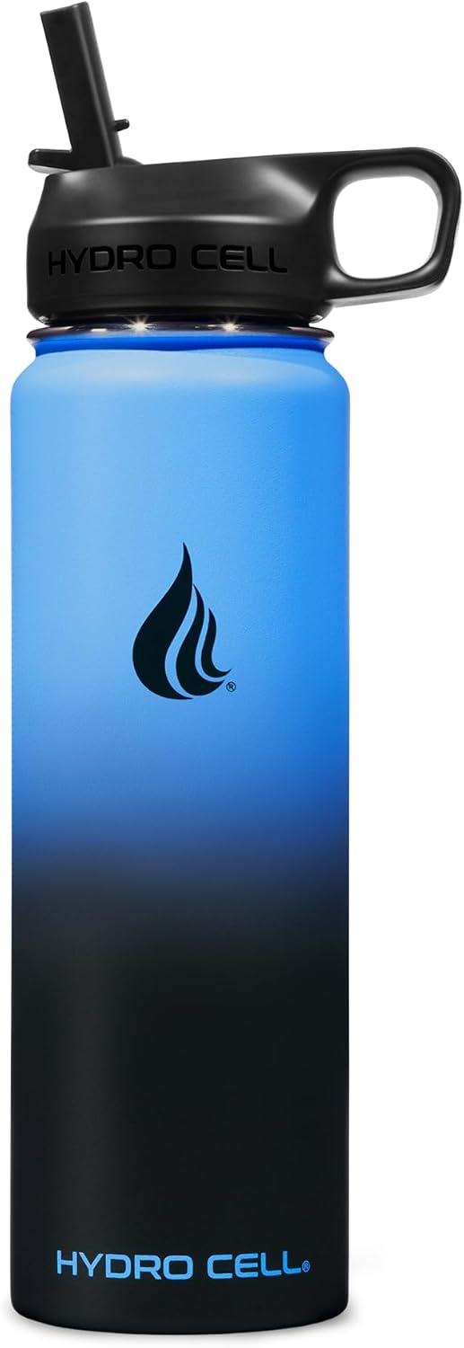 HYDRO CELL Stainless Steel Insulated Water Bottle with Straw - For Cold & Hot Drinks - Metal Vacuum Flask with Screw Cap and Modern Leakproof Sport Thermos for Adults (Blue/Black 24oz)