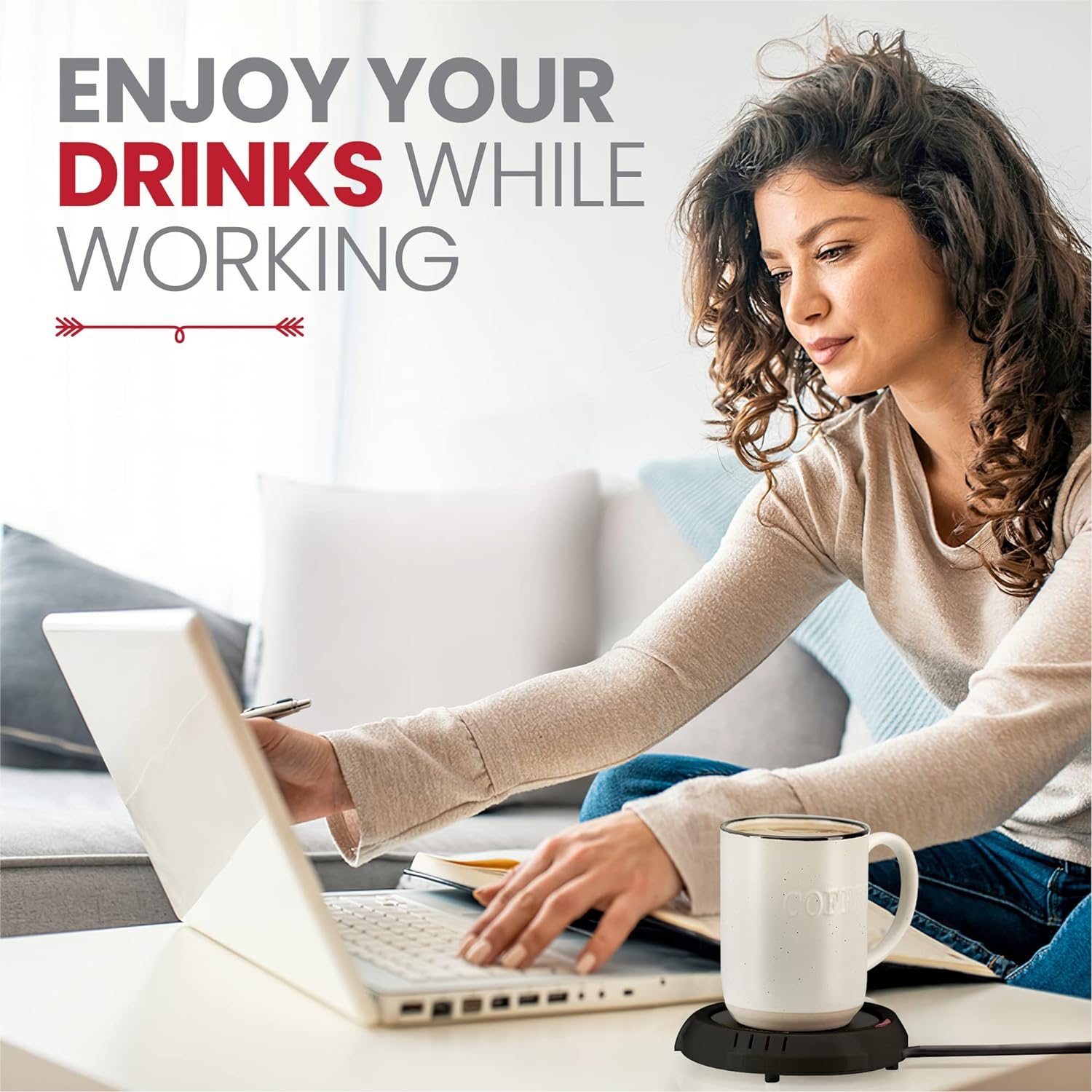 - EXTENDED WARMTH FOR BEVERAGES AND CANDLES: Picture this: your coffee or tea is always at the perfect sipping temp. And those candles? Pure relaxation, no flames. Our electric coffee mug warmer for desk works its magic, keeping it all cozy just for you!