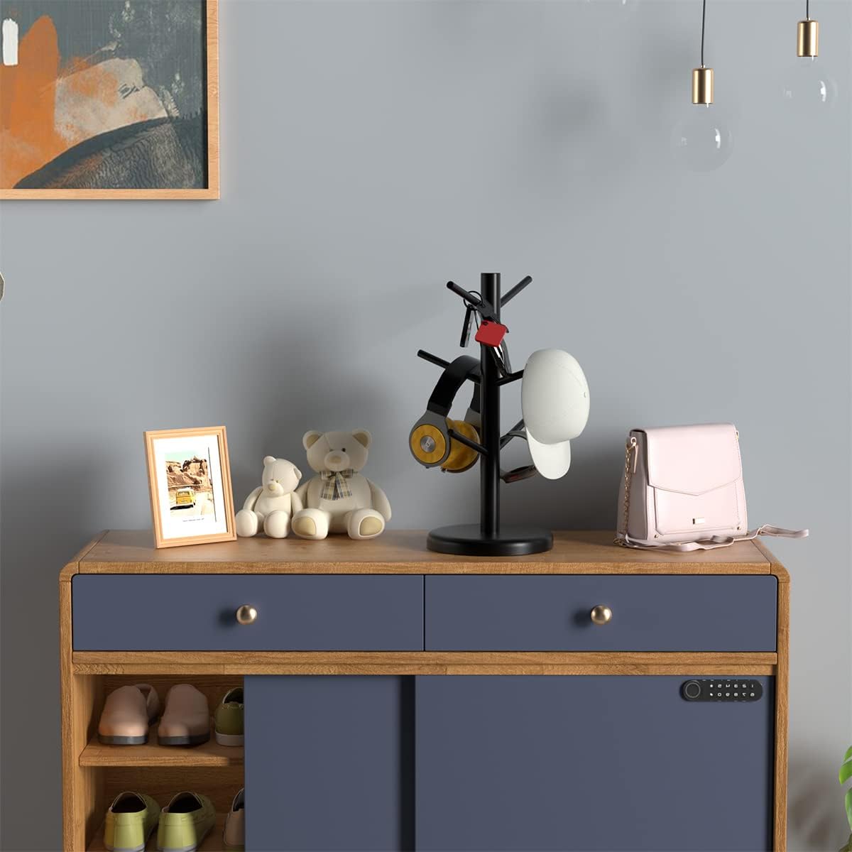 Dorhors Mug Holder Tree,Coffee Cup Holder with 6 Hooks, Wood Mug Rack for Counter,Coffee Bar Accessories and Orgnizer Station,Black