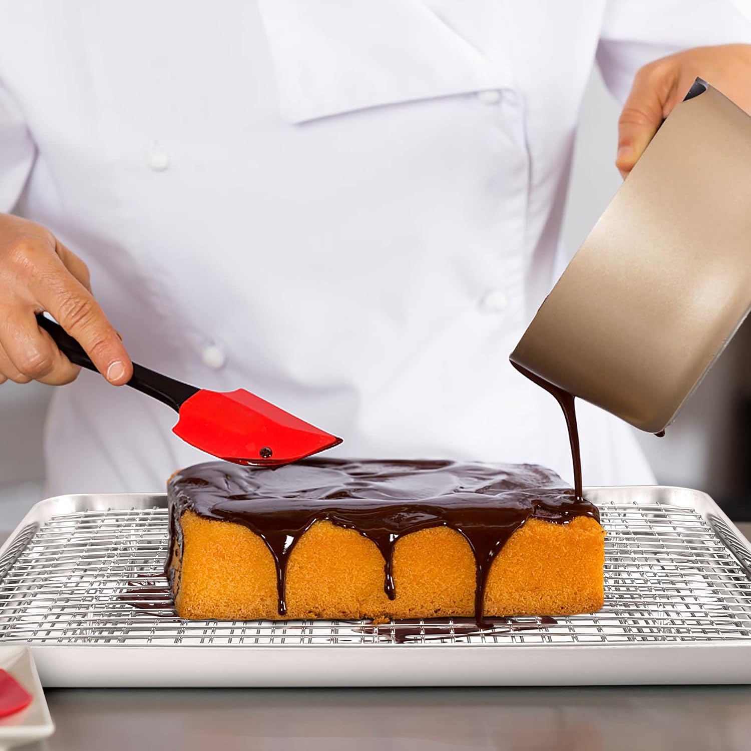 - Cooking Evenly & Quickly: The cooking rack with 0.6” x 0.6” grid spacing let grease drip through while avoiding the food from falling off, 0.75 inch elevated feet raised the entire rack up, Helps create proper air circulation for evenly baking and quickly cooling, Heavy gauge wires are able to withstand both hot and cold temperatures, Perfect for all types of use