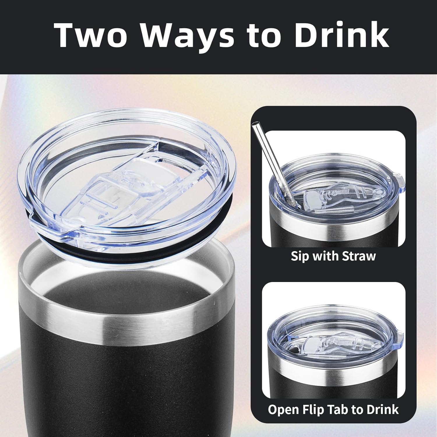 - 🥤【Packing List】: 20oz insulated coffee tumbler with leak-proof lid, two stainless steel straws (one curved and one straight), straw cleaning brush is a great addition (HAND WASH RECOMMENDED). Best for home, office, camping, vacation, sports, travel, etc