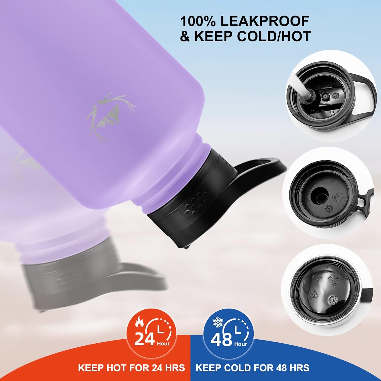 - 【Triple-Layer Vacuum Insulation】 – This insulated water bottle is engineered with triple-wall, vacuum-sealed insulation and made from premium 18/8 food-grade stainless steel. This advanced design locks in temperature, keeping drinks ice-cold for up to 48 hours or steaming hot for up to 24 hours. The no-sweat exterior prevents condensation and protects your hands from heat or frost, making it reliable for outdoor sports, travel, camping, and daily hydration