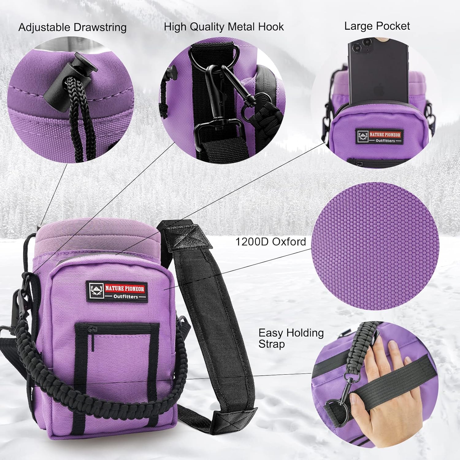 - 【Portable Water Bottle Holder】 – To make carrying easier, this water bottle comes with a handmade paracord handle and adjustable shoulder strap for hands-free convenience. The holder includes a zippered storage pocket for small items like keys, cards, or snacks, and a side hook for accessories. Whether you’re going on long hikes, outdoor adventures, or traveling, this bottle + carrier set offers both functionality and style