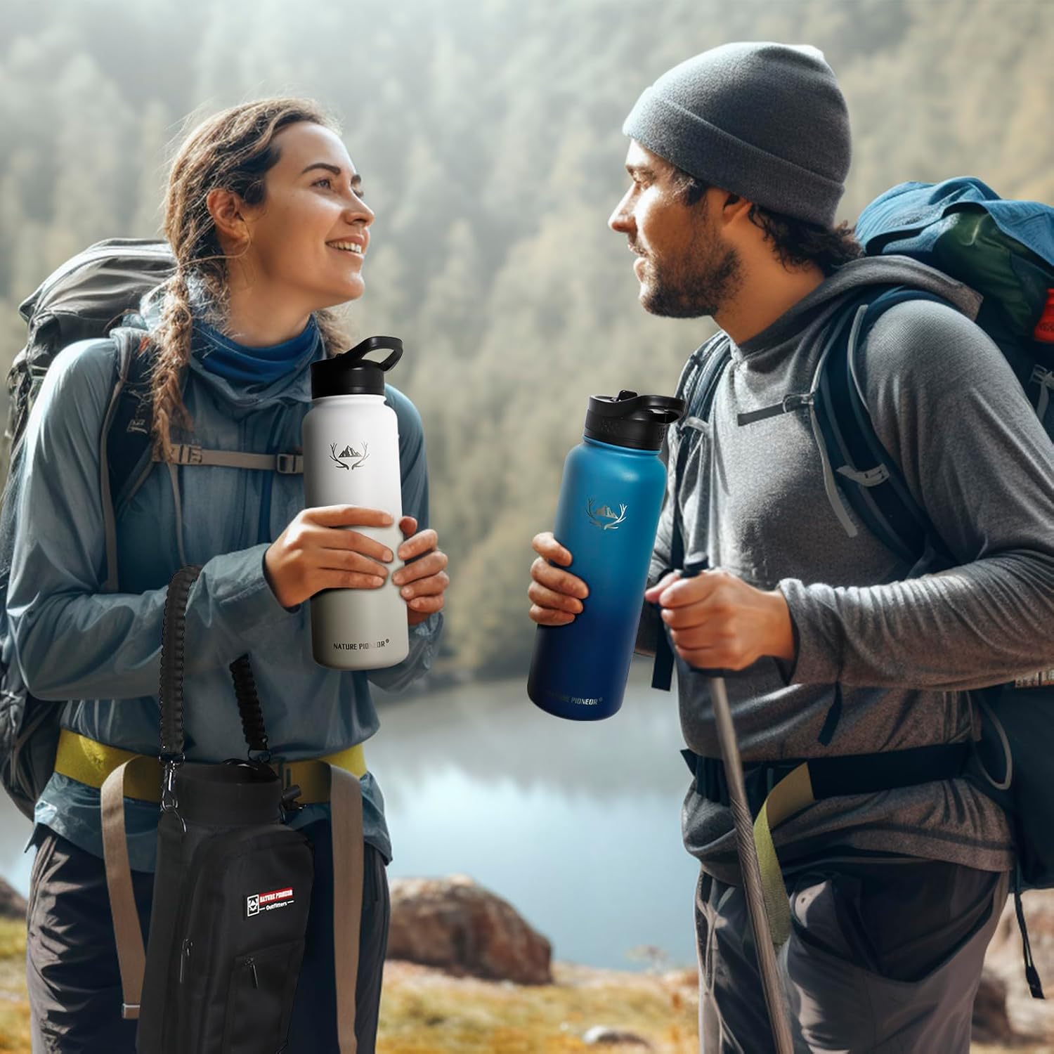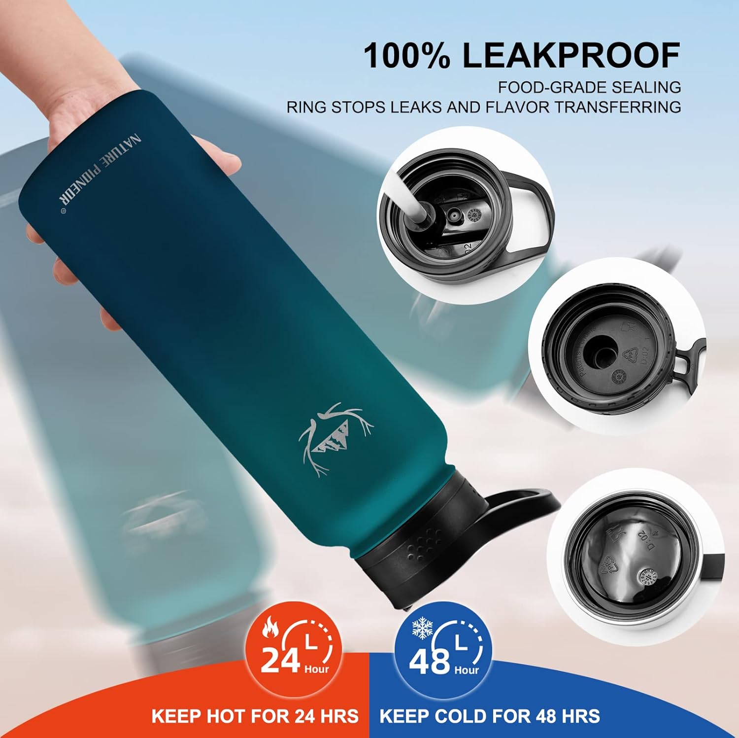 NATURE PIONEOR Insulated Water Bottles with Straw - 40oz Stainless Steel Vacuum Bottle with Holder/Carrier/Sleeve - Reusable 18/8 Food Grade 40 oz Water Jug