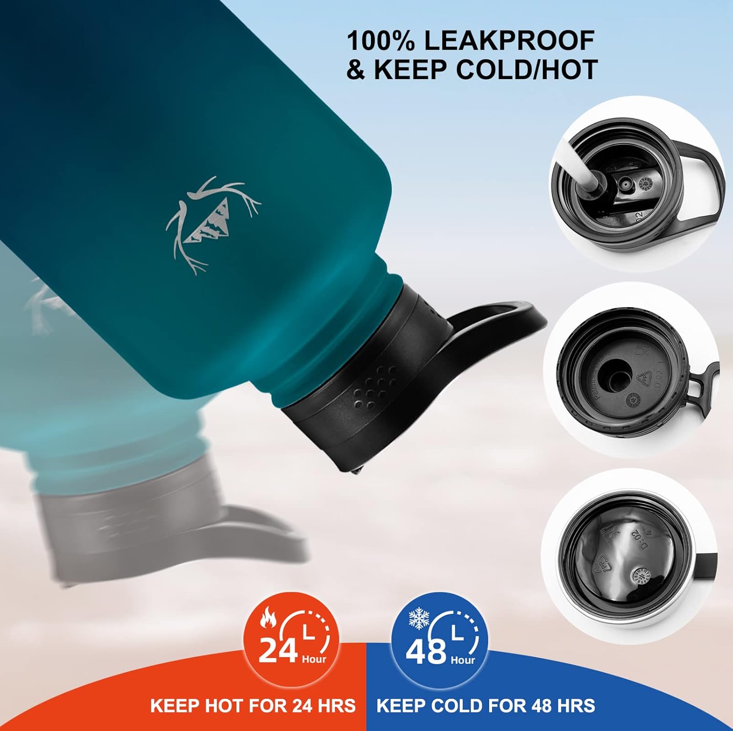 - 【Triple-Layer Vacuum Insulation】 – This insulated water bottle is engineered with triple-wall, vacuum-sealed insulation and made from premium 18/8 food-grade stainless steel. This advanced design locks in temperature, keeping drinks ice-cold for up to 48 hours or steaming hot for up to 24 hours. The no-sweat exterior prevents condensation and protects your hands from heat or frost, making it reliable for outdoor sports, travel, camping, and daily hydration
