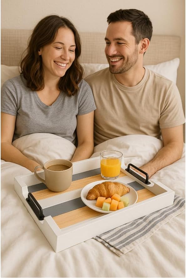 - ✅ 【HIGH-QUALITY SERVING TRAY】- After countless times of adjustment and testing, we chose advanced natural pine wood grain material to ensure lightweight, durability and stability.