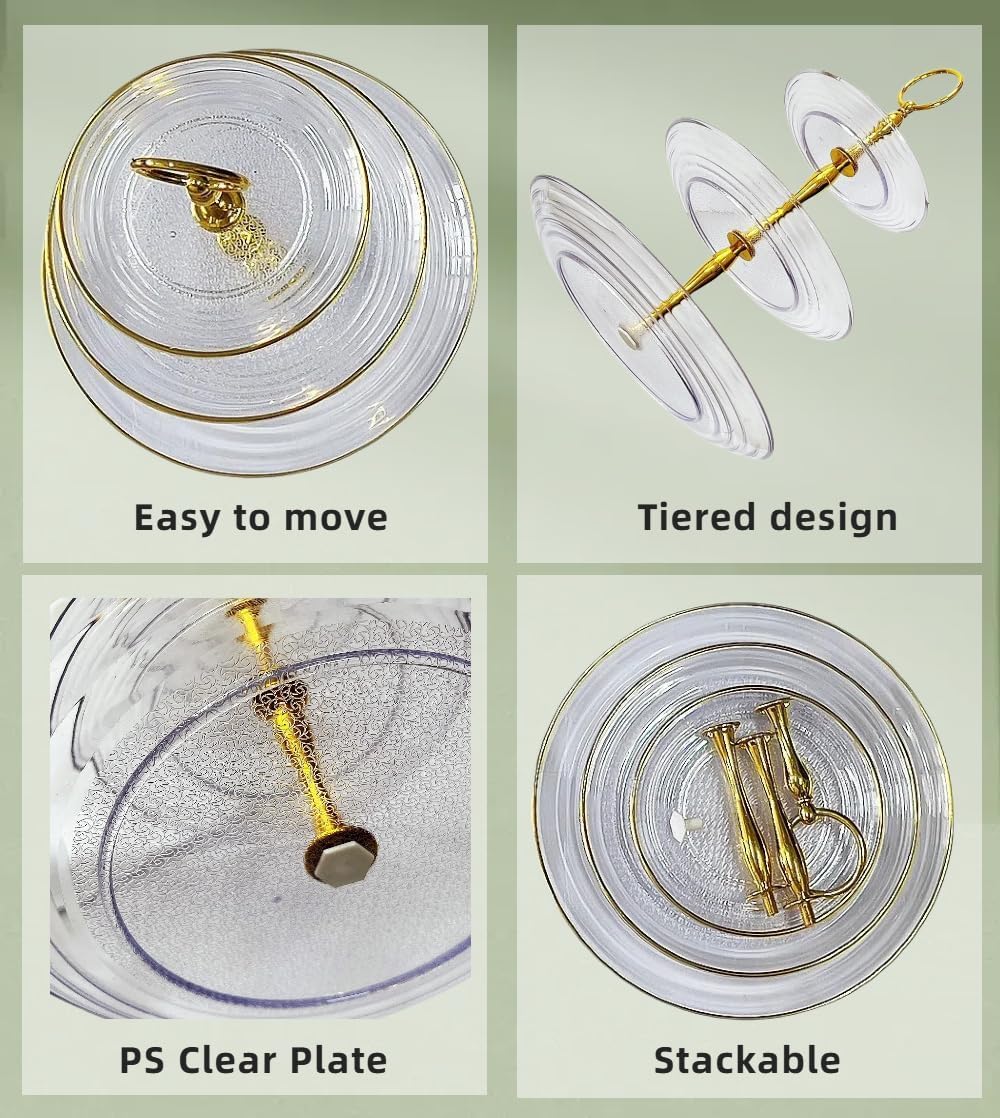 - The cupcake stand designs with 3-tier serving platters, not only can save space,put more snack desserts, but also make your table clean and tidy. And the unique pull ring bracket design shows charm, which can be carried and moved more conveniently