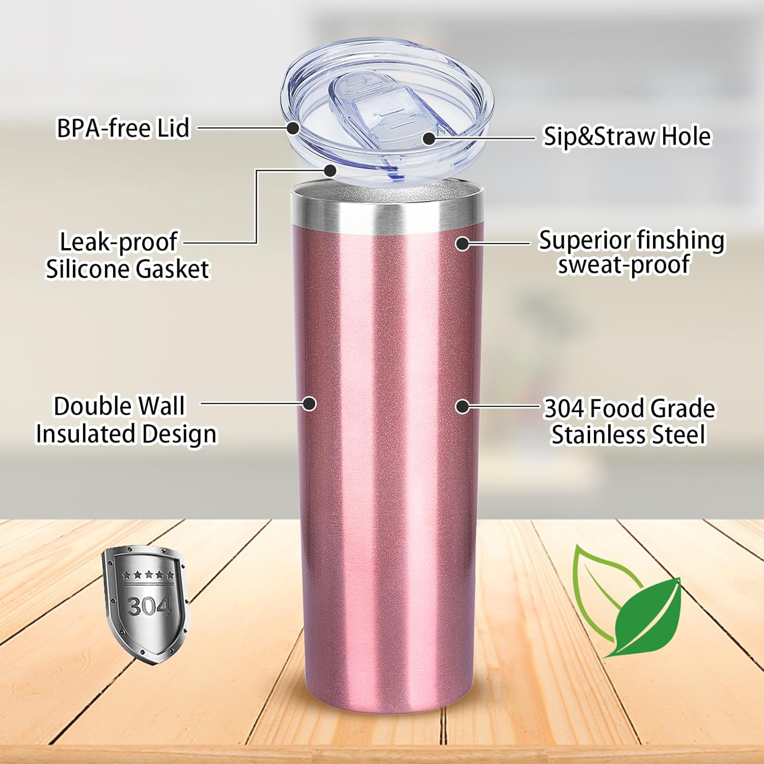 - 【BPA-Free Sliding Lid &Straw Friendly Design】 The lid of stainless steel skinny tumbler is BPA-free and Eco-friendly lid with gasket sealed to provide maximum splash-proof capability and the non-toxic lid will not affect the quality of the drink.What’s more,its’ drink hole on the top for easier sipping.