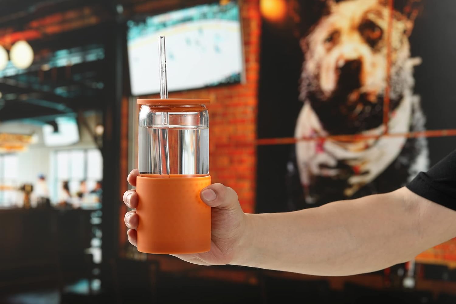- The unique silicone sleeve and lid design provides a strong protection for the glass cup. if the glass cup is accidentally turned over on the desktop, the chance of breaking is very small, and the sealed lid ensures that the liquid will not overflow.