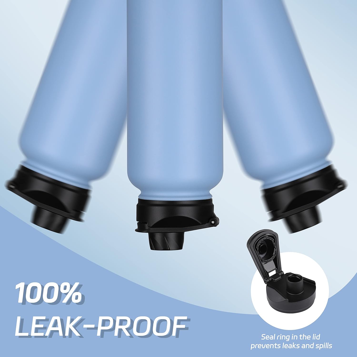 - 【SPOUT LID & STRAW LID】Available in 2 leak-proof covers that can be switched at any time: 1 flip-up straw lid, 1 easy-twist spout lid. All caps are leak-proof, so you can drink on the go without spilling, and don't worry get wet and putting it in your bag. Its wide-mouth opening makes your ice or fruits filling and cleaning easy and fast.