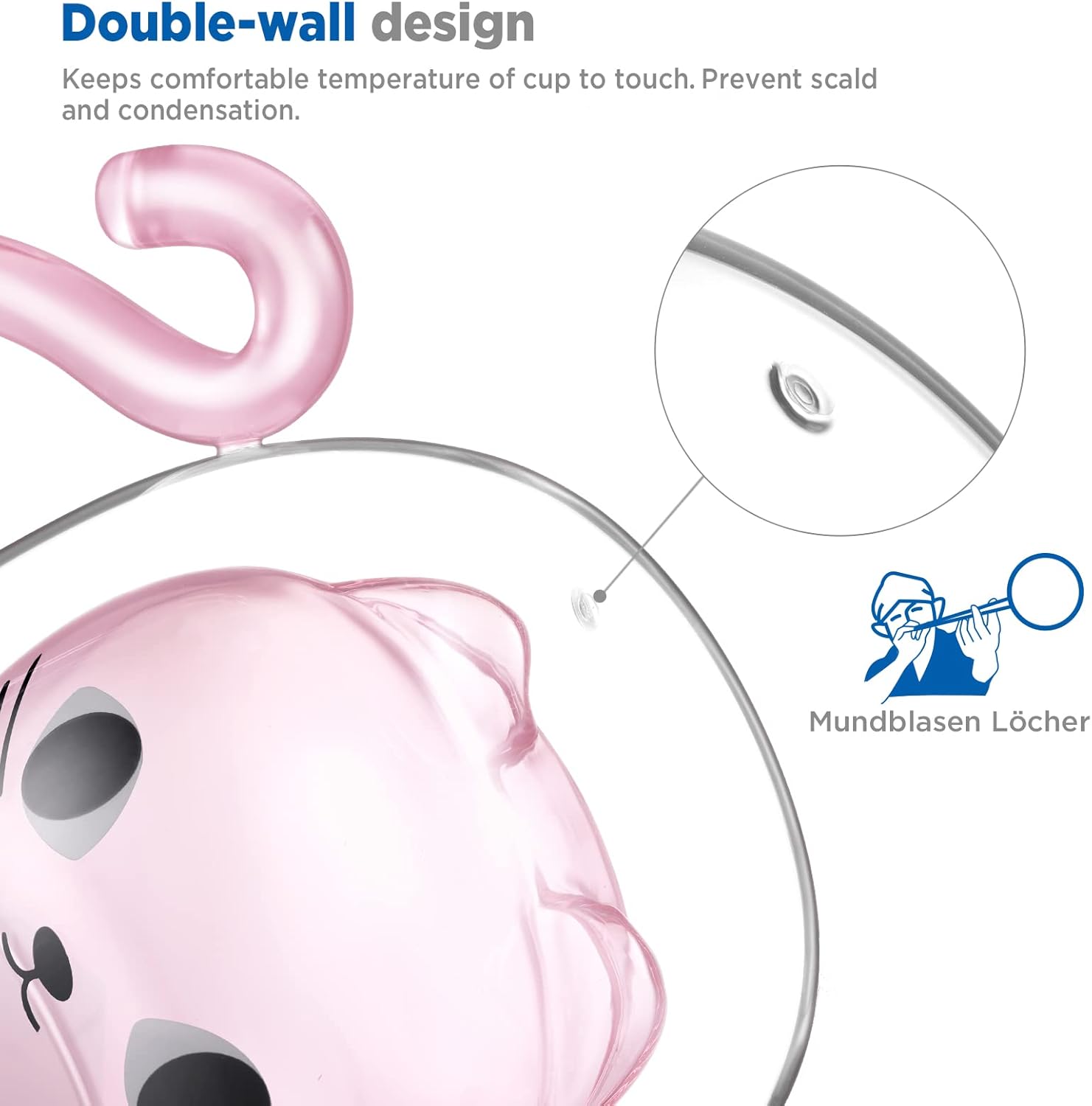 - Guarantee: ecooe 1*290ml double walled cute cat glass cup,1*spoon, and friendly product support(within 18 months). All glass articles are brittle, so be careful when using or washing