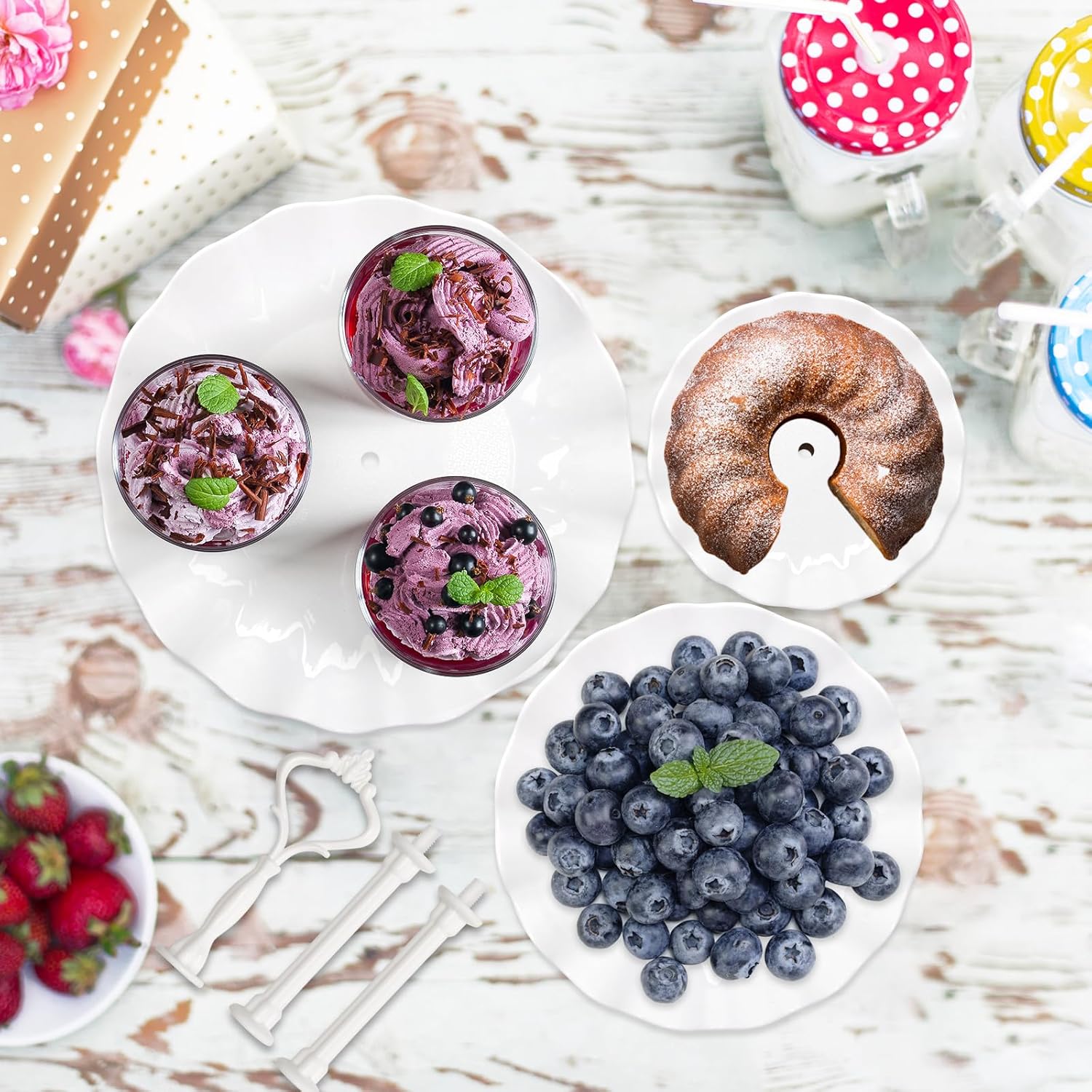 - Easy to Assemble: The whole cupcake stand has strength and stability by connecting the tiers with solid pillars and screws. Easy to assemble and requires no tools.