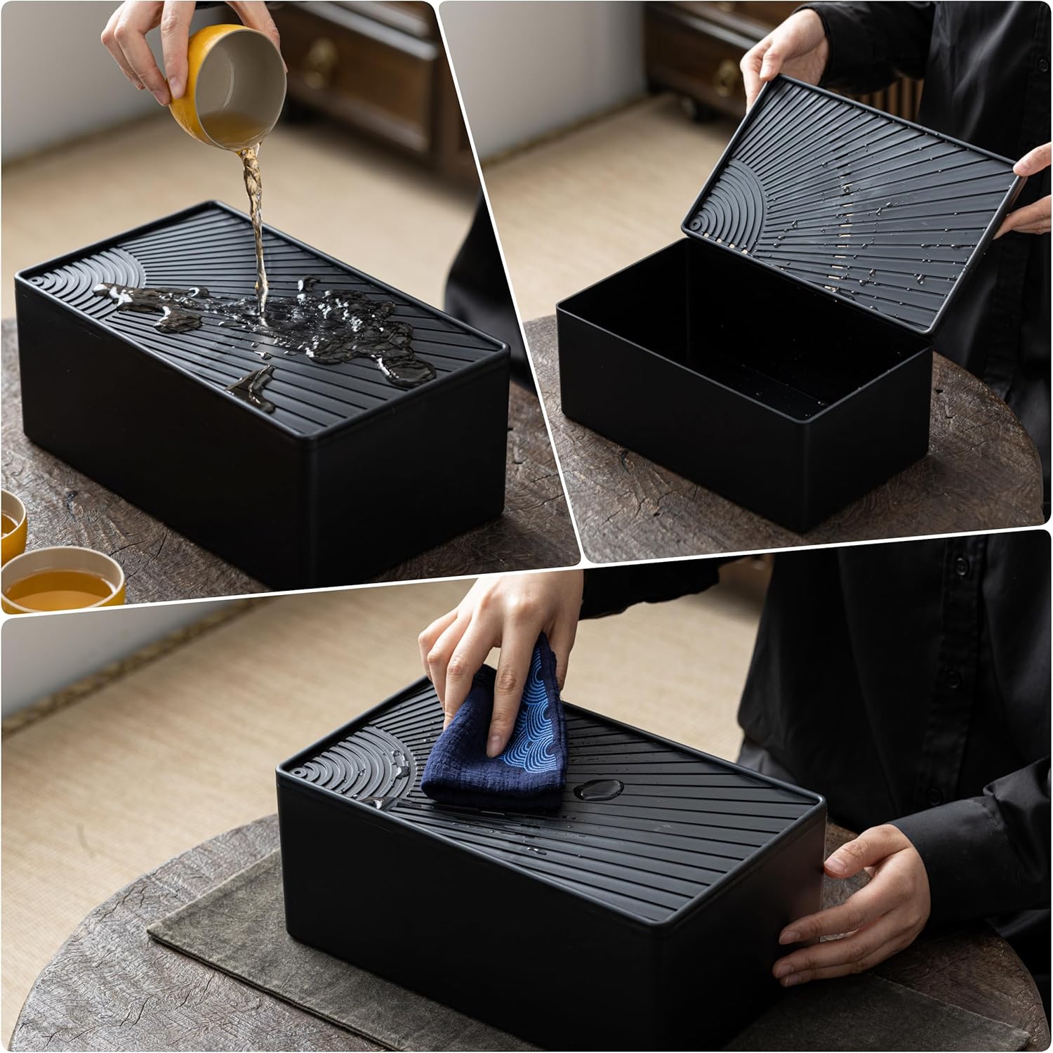 - ASIAN TEA SET MULTIFUNCTIONAL TEA TRAY: Our tea tray not only functions as a traditional tea ceremony, but also conveniently stores waste water, making it perfect for enjoying a quick, enjoyable tea break at home or in the office. When you use it in large quantities, simply connect the included drain hose and suction bulb, and you'll never have to worry about disposing of wasted tea broth again. You can fully immerse yourself in a pleasurable tea break experience, just like in a professional tea house.