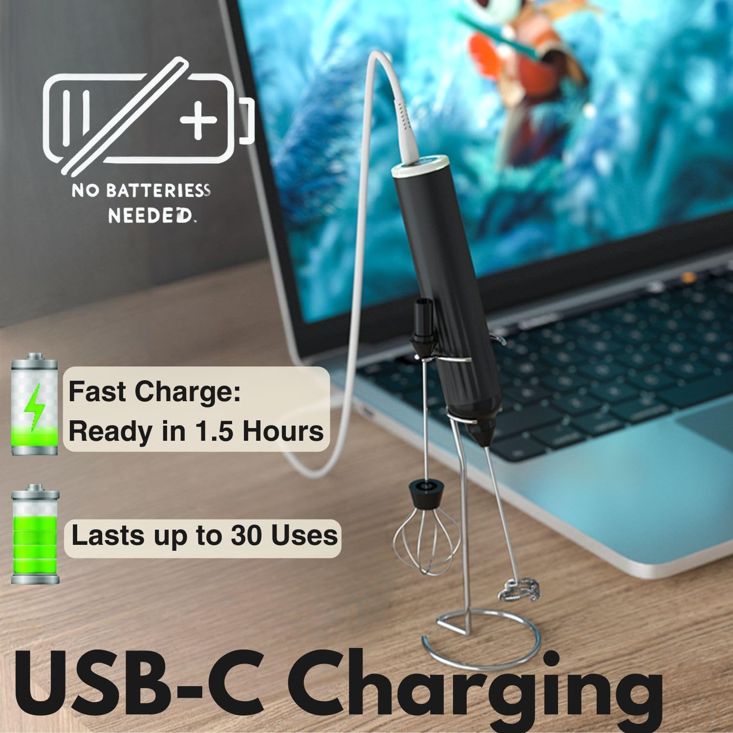 - 【USB C fast charging and long-lasting battery】 This electric milk frother is powered by a built-in 1200mAh lithium battery that can be fully charged in 2 hours via USB C cable. It can work for a long time on a single charge, so you don’t have to worry about running out of power. The battery operated design also makes it convenient to use anywhere without cords.