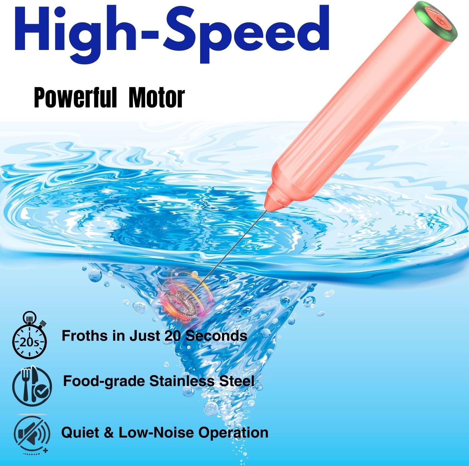 - 【Ergonomic design and easy operation】 This handheld milk frother has a sleek and ergonomic handle that fits comfortably in your hand. The ABS plastic motor is lightweight and noiseless, making it suitable for home or office use. The one-button operation is simple and intuitive. Just press and hold the button to turn on/off the device and press it briefly to change the speed.