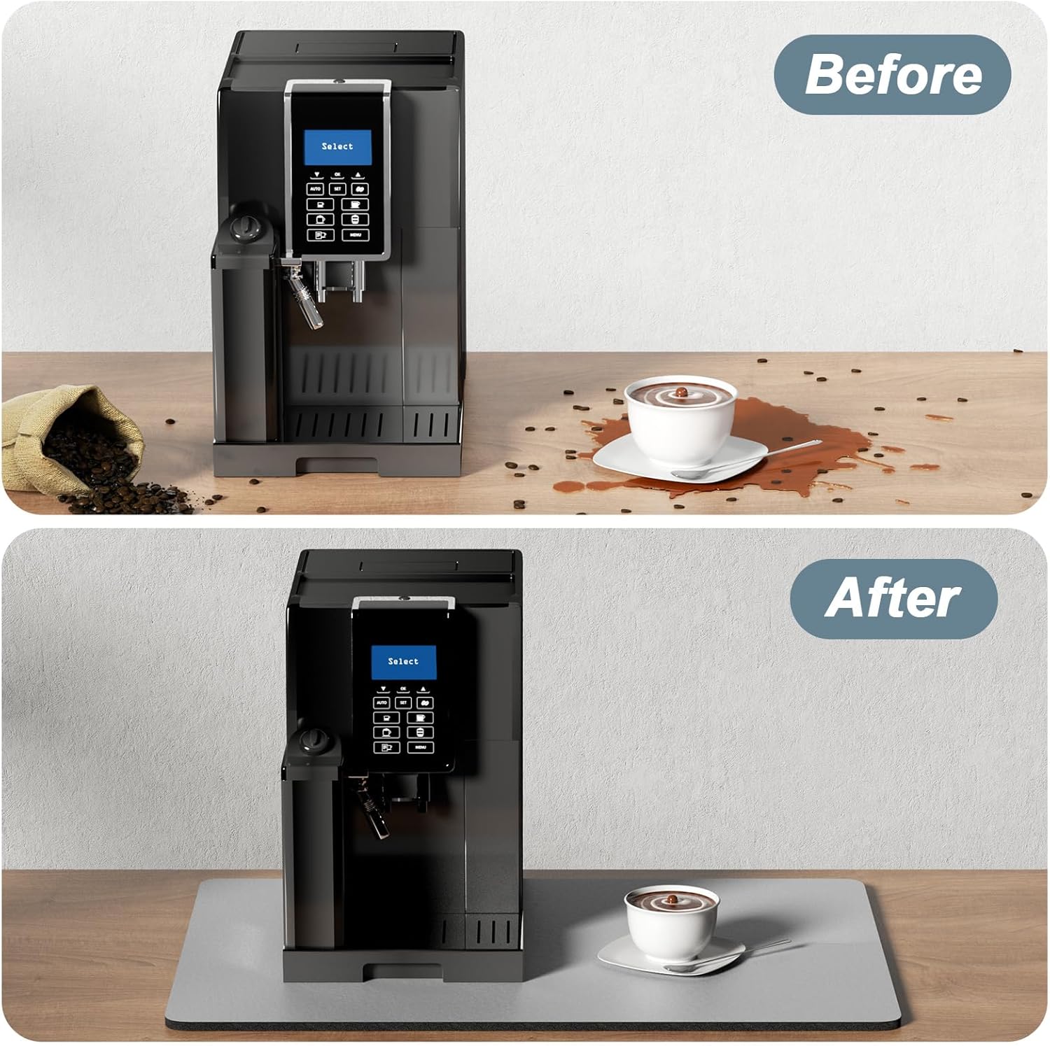 - Easy to Clean: The coffee bar mats for countertop can be cleaned with hand or machine to remove stains, up to 91% porosity material allows coffee bar mats to dry quickly without a machine