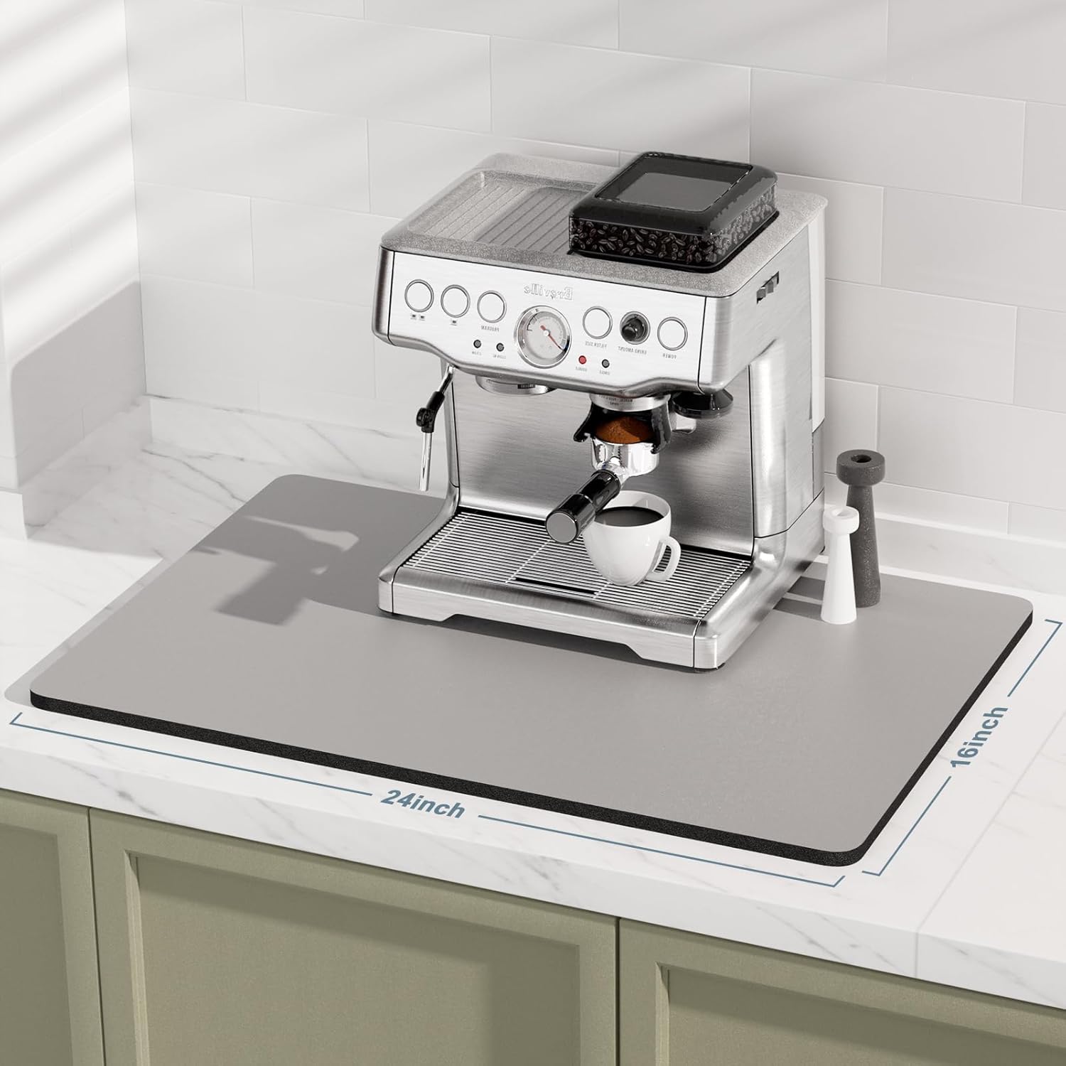 Rnivvi Coffee Mat, 16" x 24" Coffee Bar Mats for Espresso Machine Station Accessories and Organizer, Hide Stain Rubber Backed Absorbent Dish Drying Pad for Kitchen Counter, Cute Bar Decor Pad, Gray
