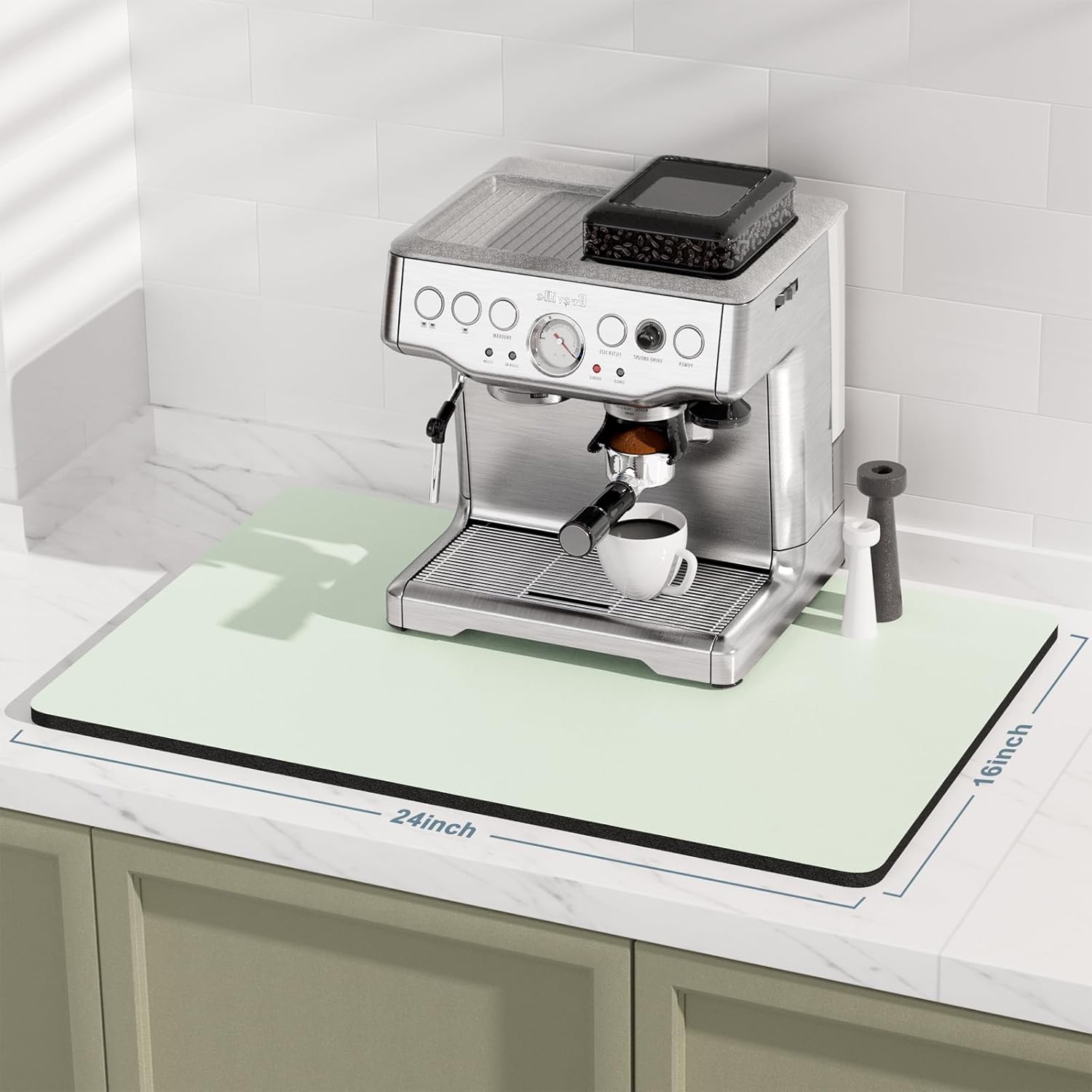 - Versatile Size: Coffee pad for espresso machine accessories measures 16" X 24" fits most counters. Thickened design 0.16 inch thick, which can also be used for any small home household appliances indoors