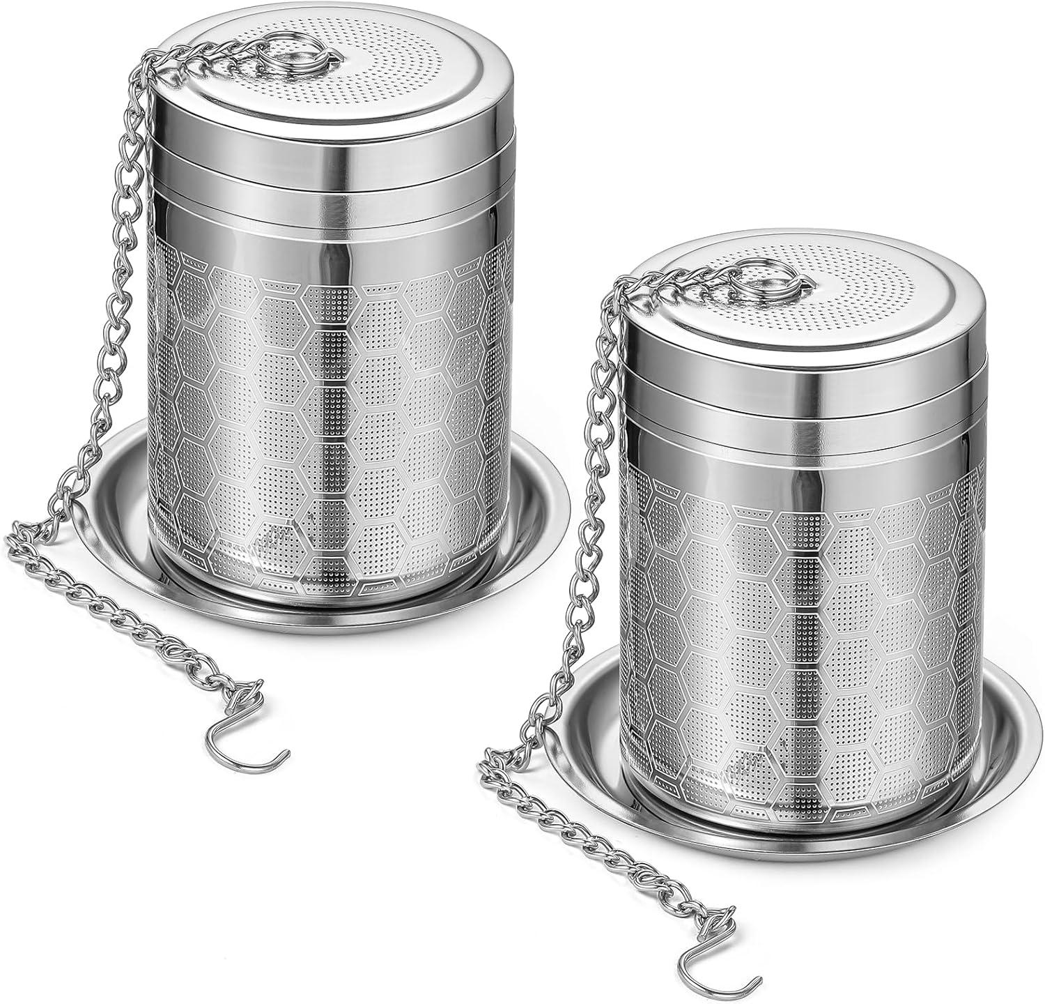 - 【Excellent Design】Tea Strainers for Loose Tea is made of food-grade 304 stainless steel, no smell, no rust, can be used for a long time, also suitable for your dishwasher.0.5mm ultra-fine filter can filter 99.99% of tea leaves, let 100% of tea fragrance fill your cup. Hook and chain design protects your fingers from burns. 2 drip trays keep your table tidy when making tea.
