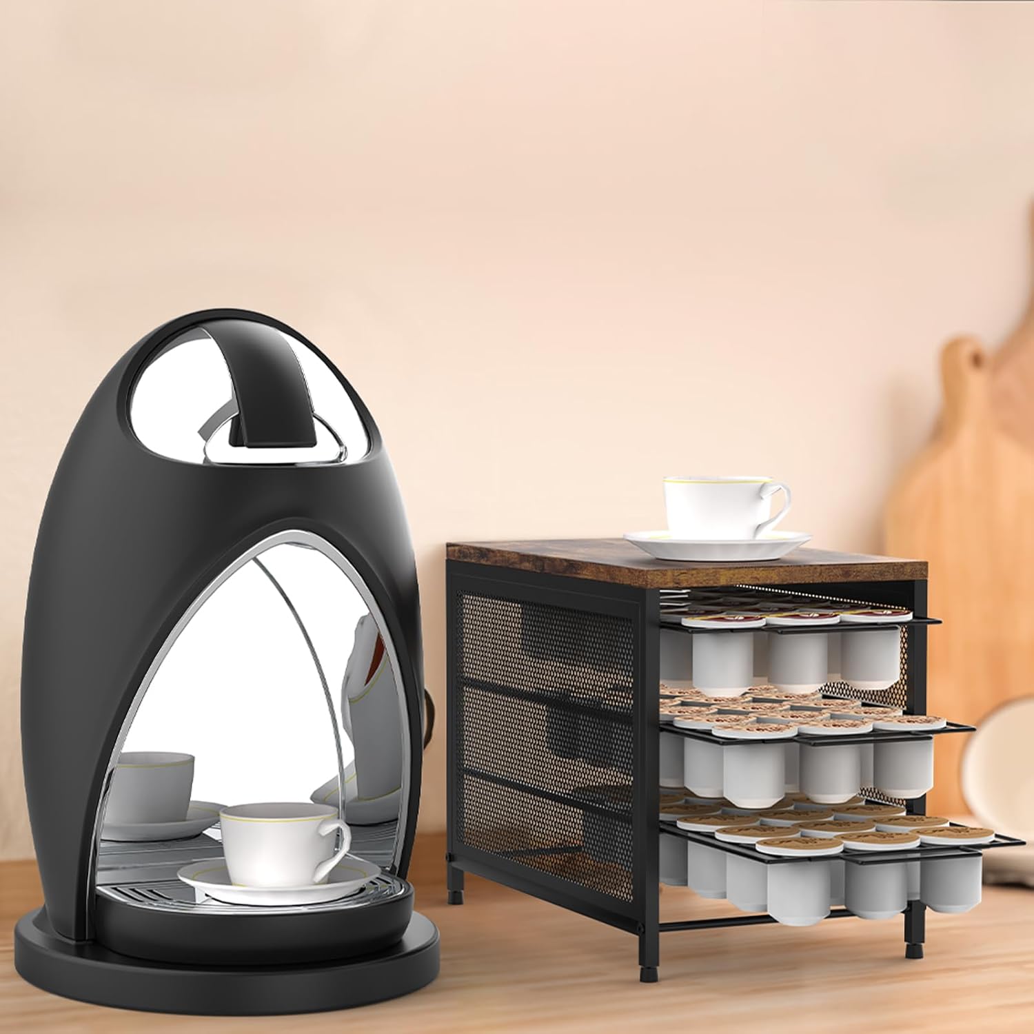 - 【Rustic and Sturdy Design】 : The coffee pod holder wooden top will firmly support your coffee maker or coffee brewer, durable and effective in preventing deformation. The stylish rustic style keurig pod holder blends into your office setting and kitchen decoration to spruce up your space.