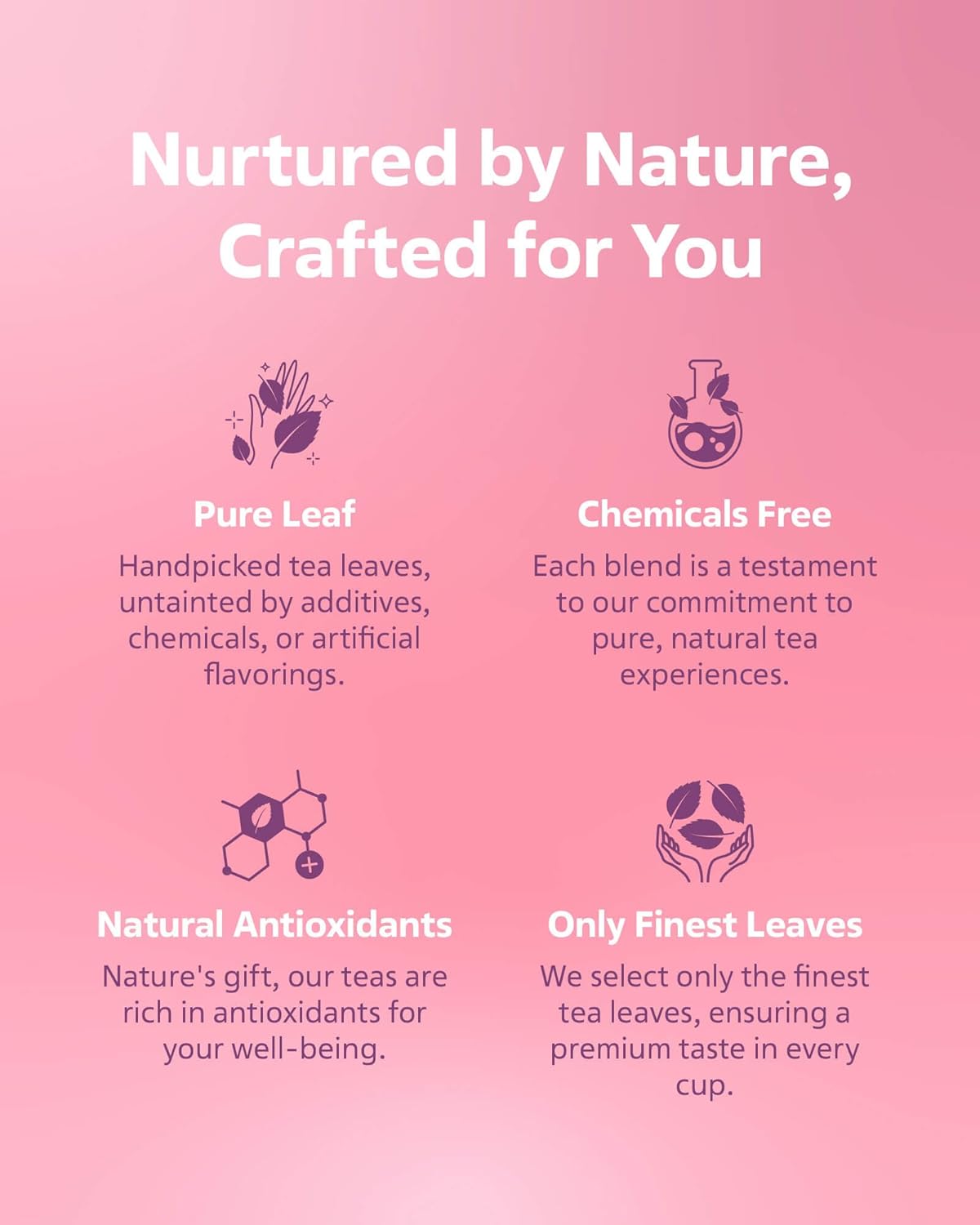 - Love in Every Bag: Tea packets are reliably packed and preserve freshness and every bit of taste inside until you brew it. There are 32 assorted teas, 8 flavored tea bags of each taste to share and enjoy daily.