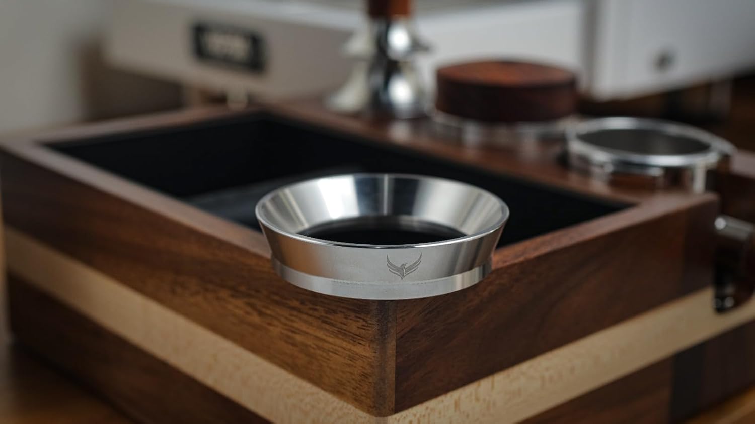 - Whether you’re upgrading your setup or gifting a coffee lover, this 58mm portafilter funnel ring and filter set brings barista-level precision to every home. A must-have espresso accessories magnetic dosing ring and puck screen set