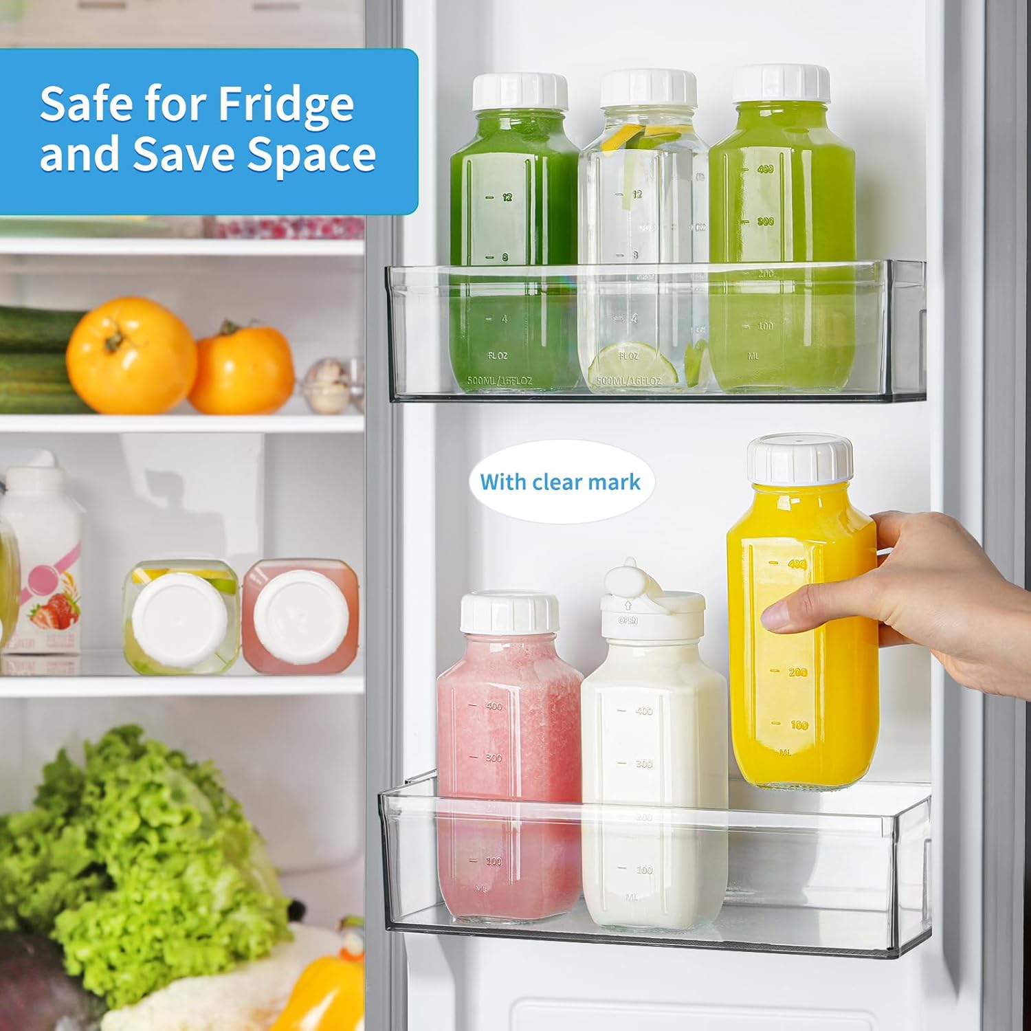 - Multipurpose Juice Containers: The 16 oz glass drinking bottles with lids are suitable for homemade juicing and various beverages, water, milk, breast milk, juice, coffee, soda, fruit tea, and also great for storing oil, honey, vanilla extract, nuts and more