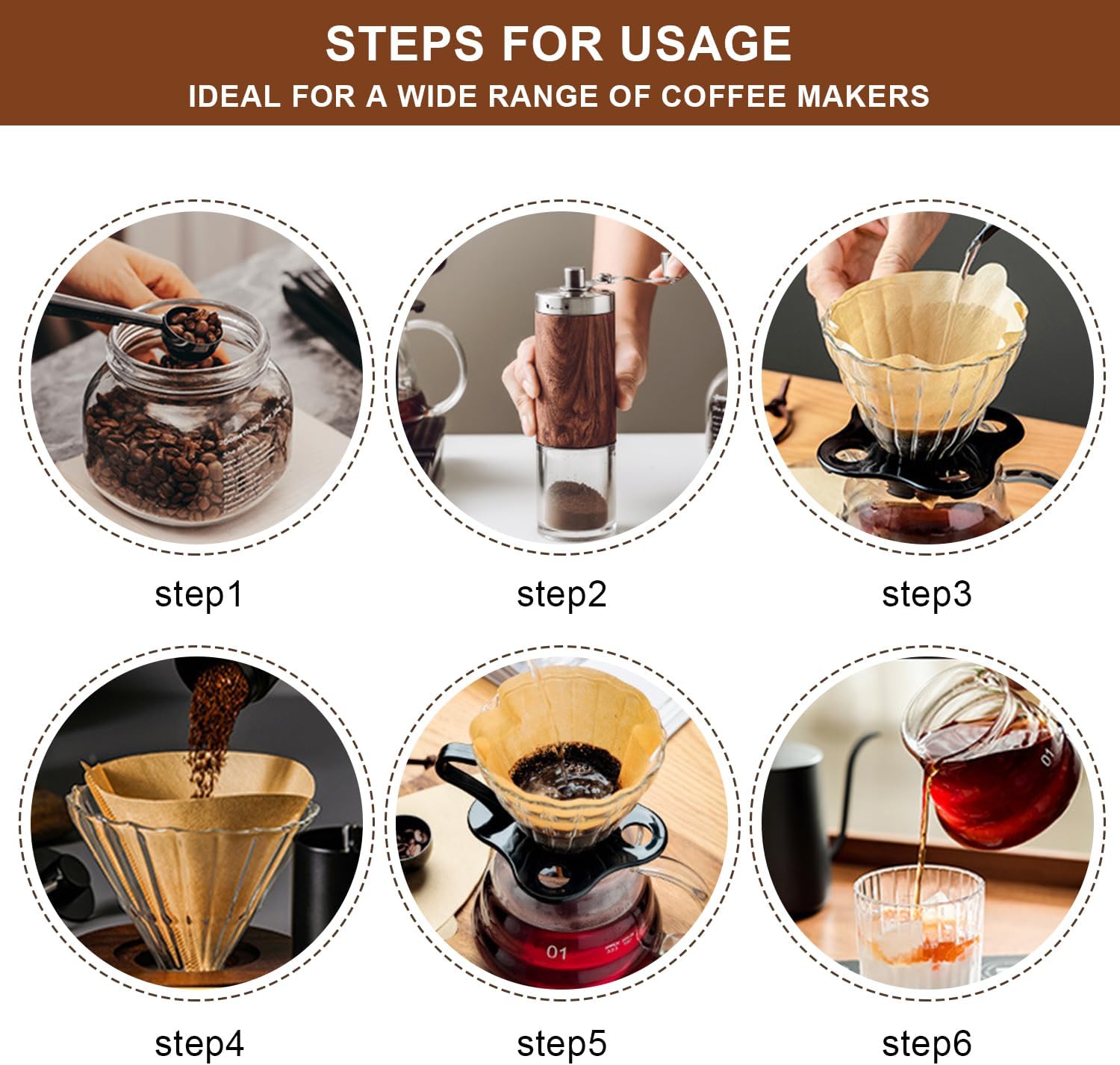 - High Quality Materials: Our coffee filters are crafted from 100% natural, unbleached paper, free of harmful chemicals and residues, ensuring that your coffee stays pure and flavorful