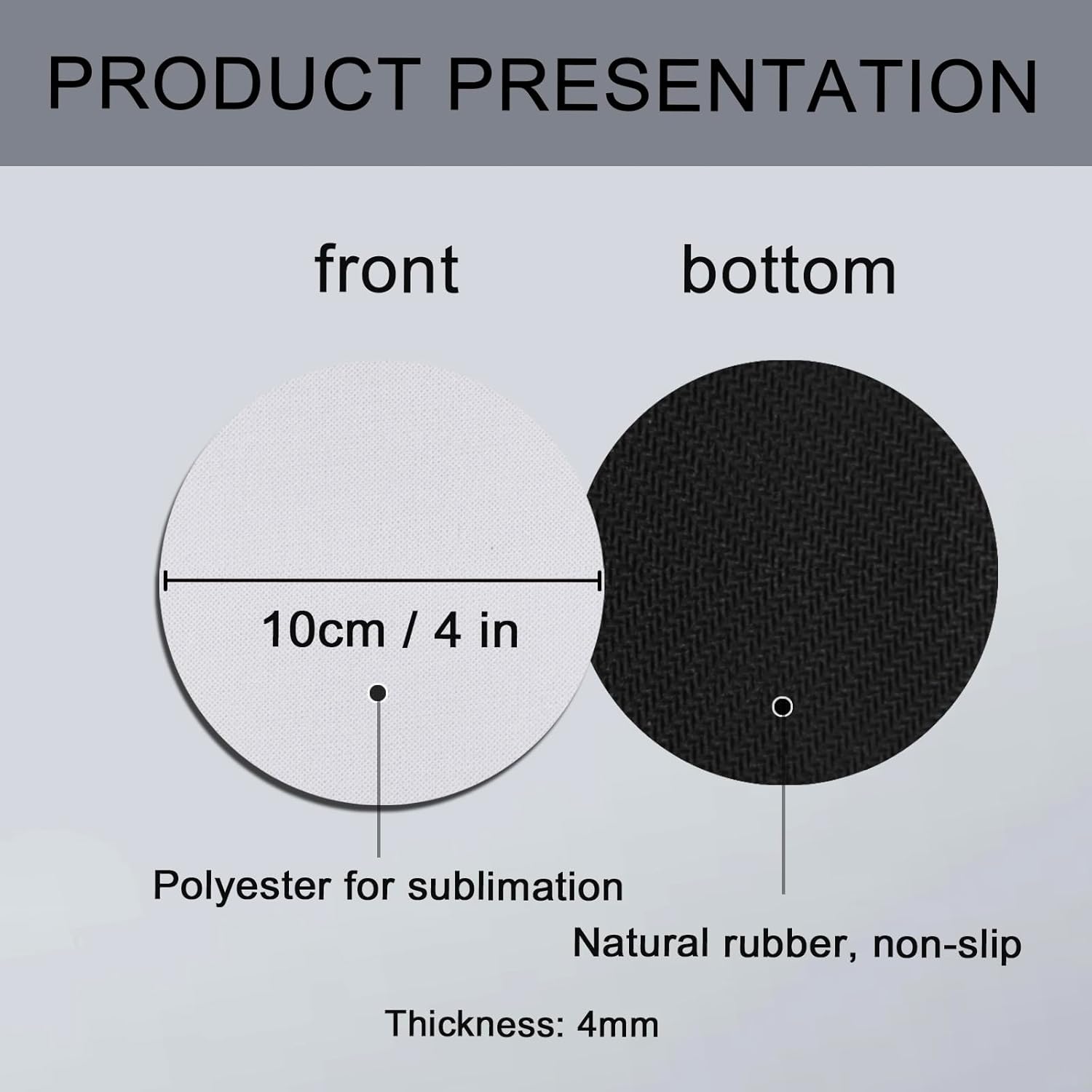 - 【Package Contents】50 PCS blank sublimation coasters, Product size: 4 x4 inches (10cm), thickness: 0.15 inch (4mm)