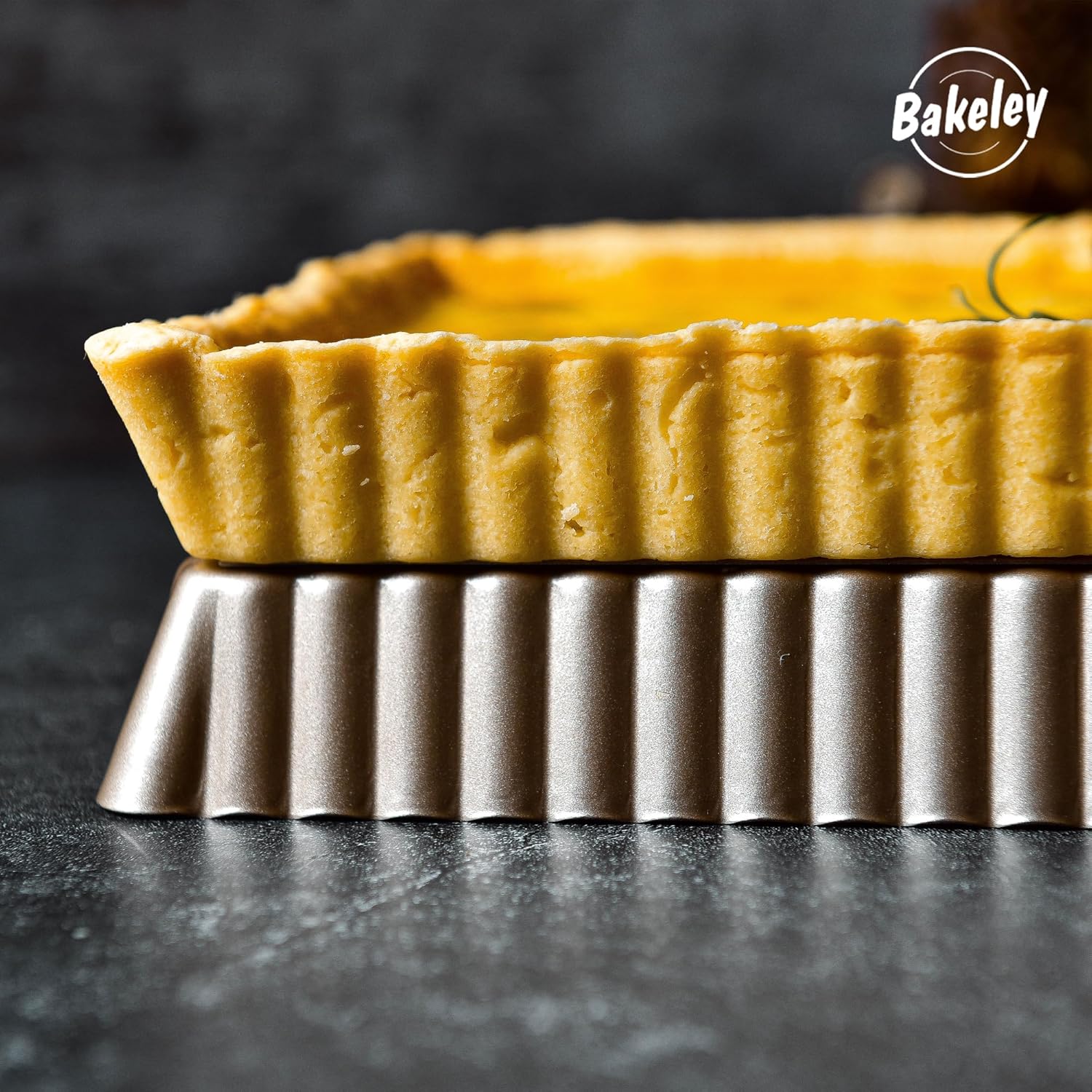 - 【Versatile Use for Baking】Bakeley tart pan is ideal for making quiche, cheese cakes, chocolate cakes, tarlets, fruit flans, pizza, egg tarts and others. Bakeley tart pans are perfect for any kind of tarts. Crust slides out of the pans so well, and it’s a good choice for hobbyists, bakers and chefs.