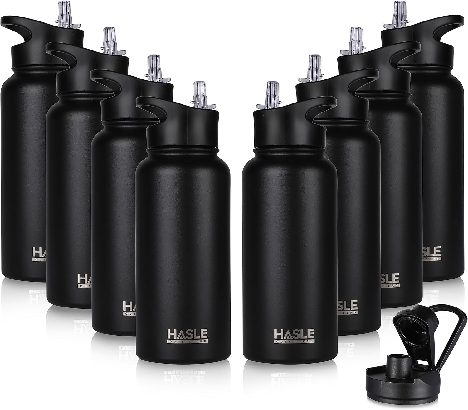 HASLE OUTFITTERS 32 oz Insulated Water Bottle Stainless Steel Double Walled Vacuum Sports Water Bottle with 2 Lids (Straw and Spout Lid) for Gym Camping Hiking(Black,8)