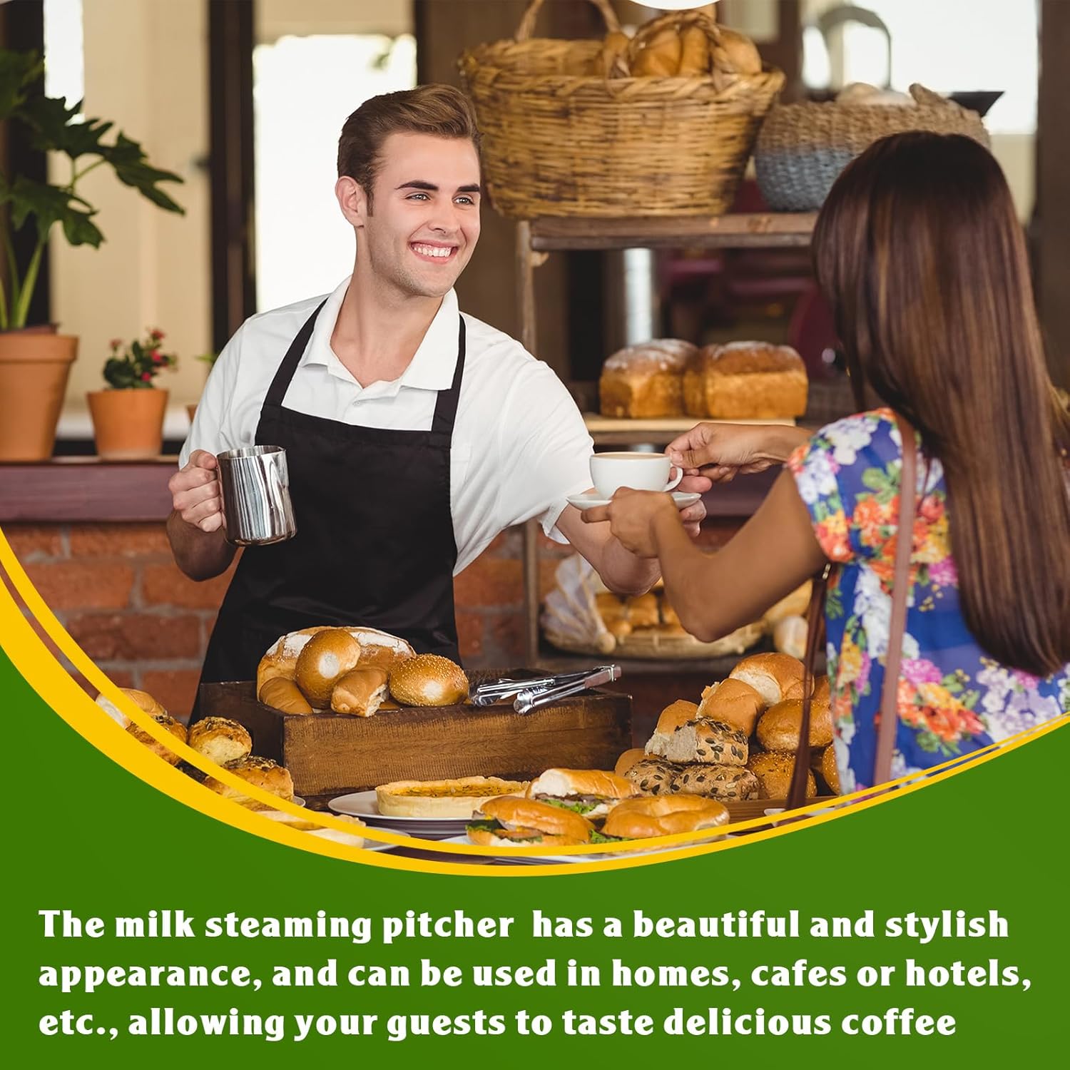 - Quality 304 Stainless Steel Material: made from quality 304 stainless steel, this milk pitcher for espresso machine is designed to last; Durable and corrosion resistant, it withstands frequent use and cleaning, making it a reliable addition to any kitchen or coffee shop